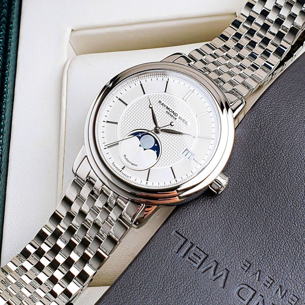 Raymond Weil Maestro Moonphase 2879-ST-65001 – Mẫu đồng hồ mang vẻ đẹp trẻ trung, thanh lịch pha lẫn cổ điển, là lựa chọn hoàn hảo cho quý ông yêu sự tinh tế, sang trọng nhưng không quá phô trương. Thiết...