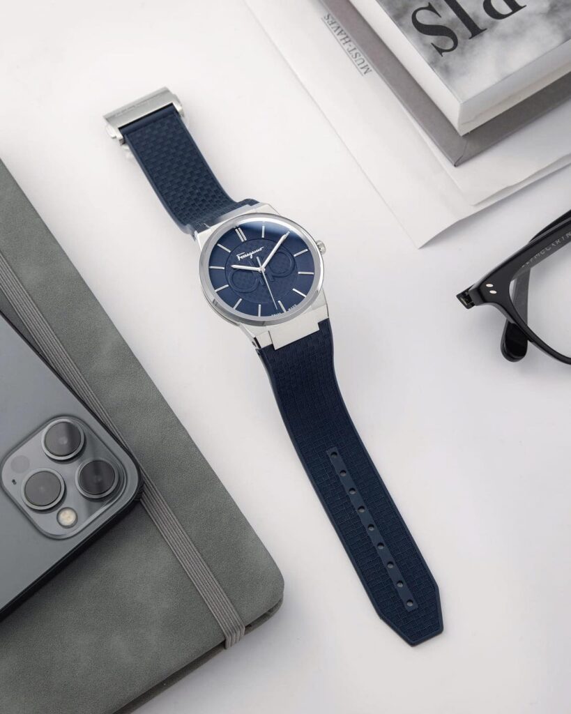 Đồng Hồ Salvatore Ferragamo Chính Hãng Nam SFHP00120 Sapphire Blue Silicone Men’s Watch