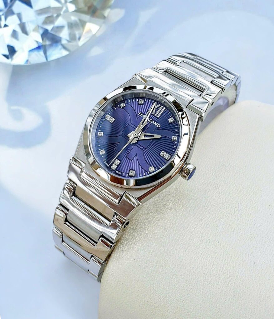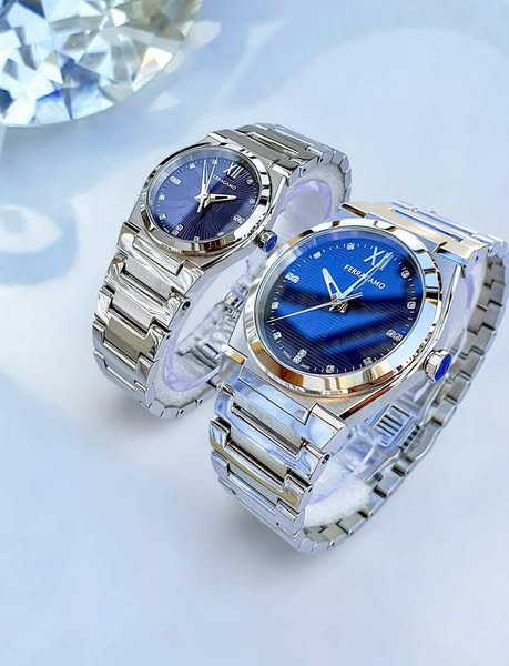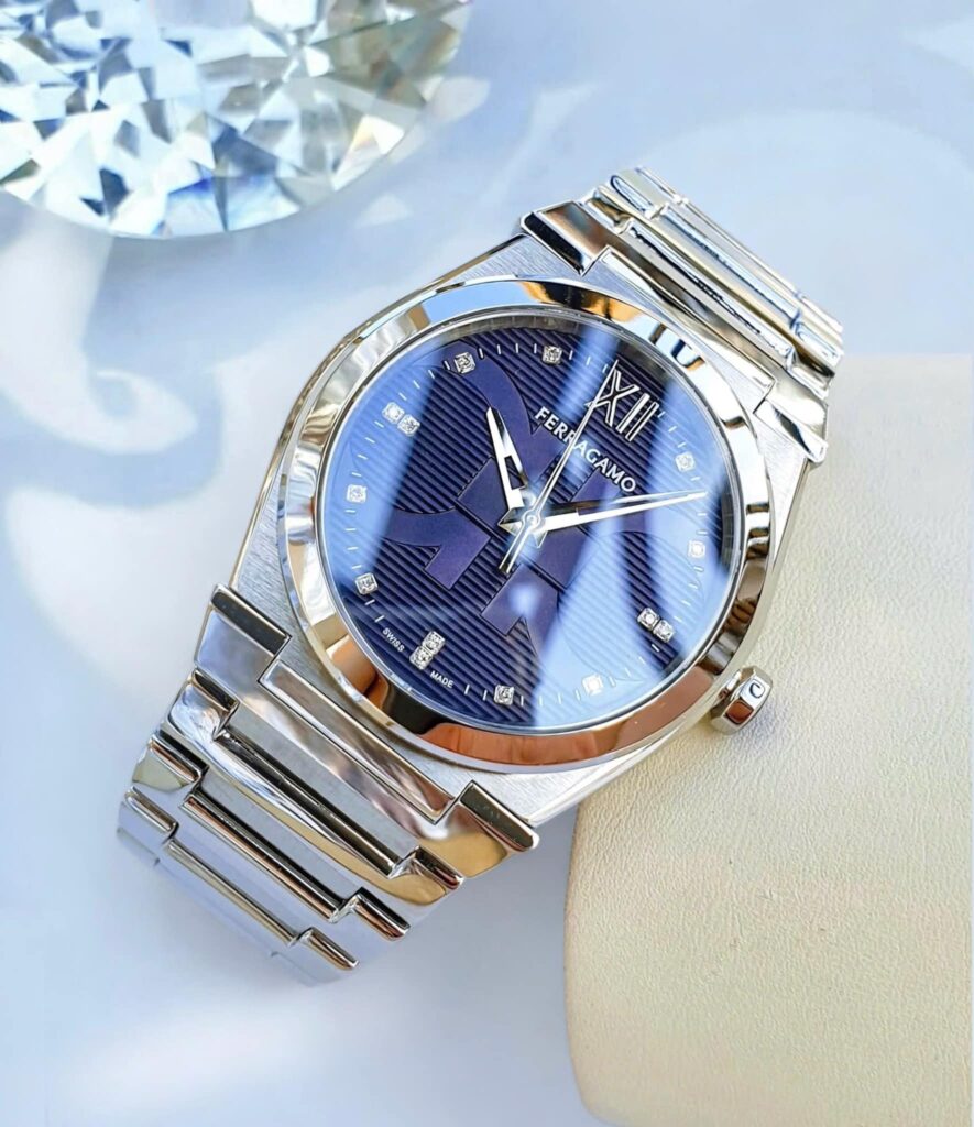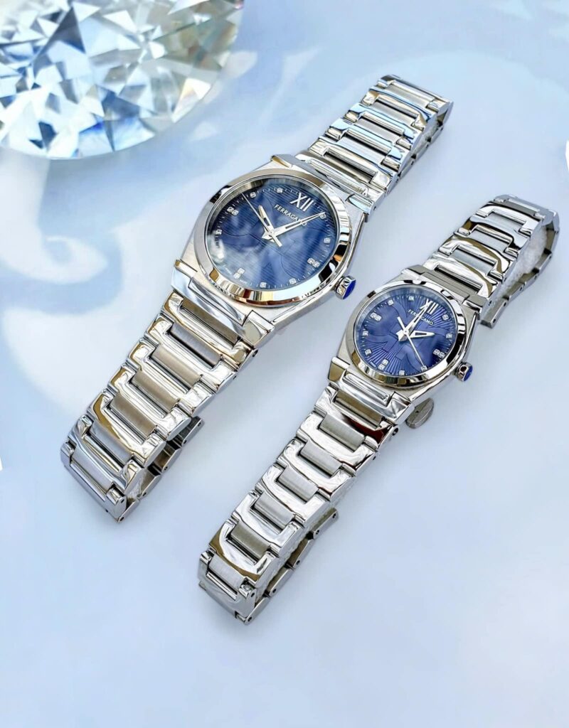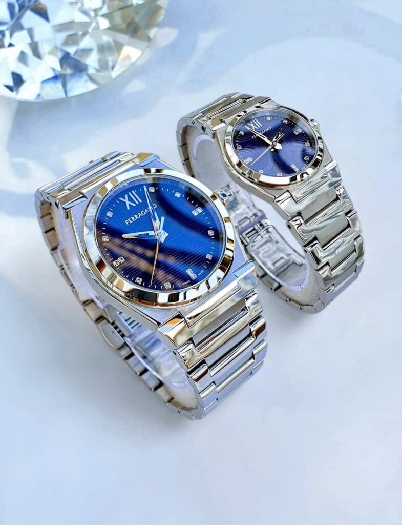 Đồng Hồ Salvatore Ferragamo Chính Hãng Nam SFYF01023 SFYG00823 Vega Quartz Diamond Blue Dial Couple Watch