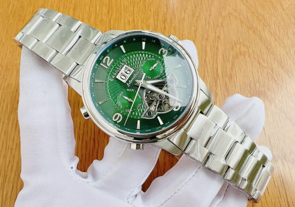 - Chỉ bảo hành thay thế mới cho những linh kiện, phụ tùng bị hỏng do lỗi của nhà sản xuất – không thay thế bằng một chiếc đồng hồ khác.Những đồng hồ có biểu hiện chạy sai giờ (nhanh hoặc chậm hơn), đứng máy và các lỗi khác thuộc về chức năng của bộ máy đồng hồ sẽ được áp dụng chế độ bảo hành của chúng tôi. Chế độ bảo hành của chúng tôi KHÔNG BAO GỒM các hư hại bên ngoài của đồng hồ.