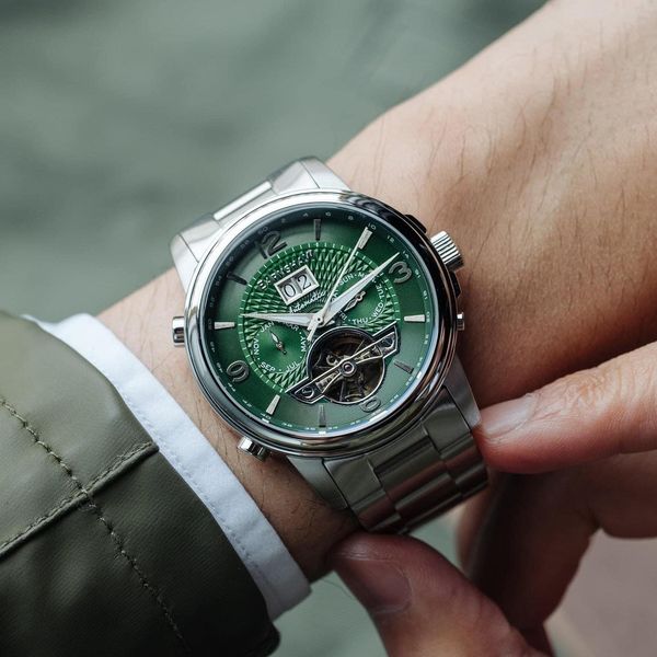 Đồng Hồ Thomas Earnshaw Chính Hãng Nam ES-8177-33 Marylebone Grand Date Open Heart Automatic Green Men’s Watch