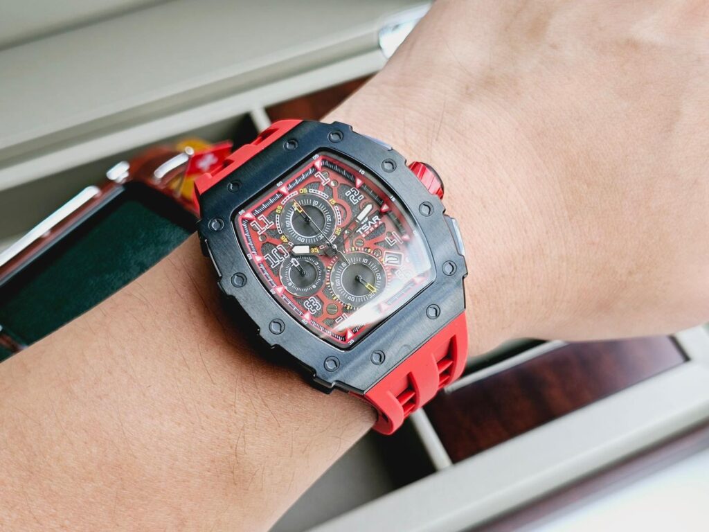 Đồng Hồ Tsar Bomba Chính Hãng Nam TB8204QRED Tonneau Chronograph Rubber Men’s Watch