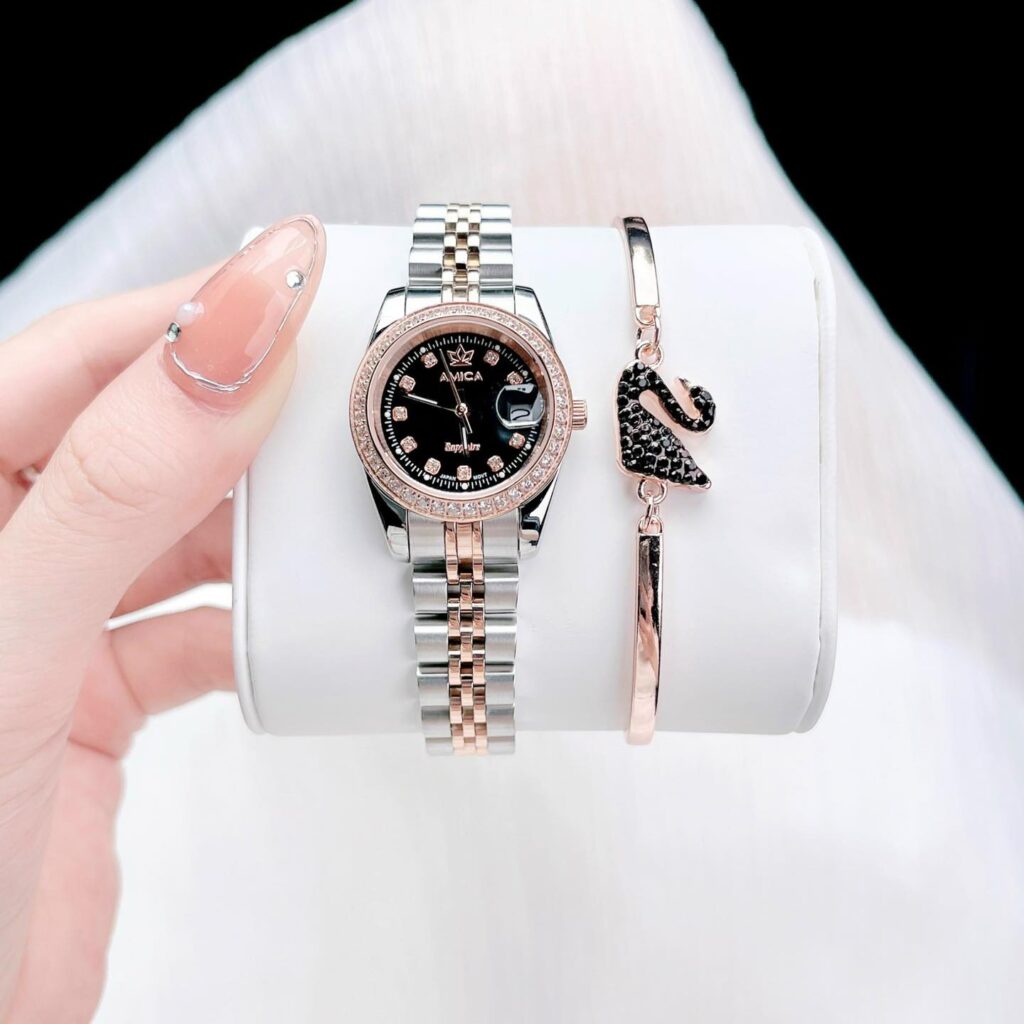 Đồng Hồ Amica Chính Hãng Nữ Black Dial Pave Ladies Watch