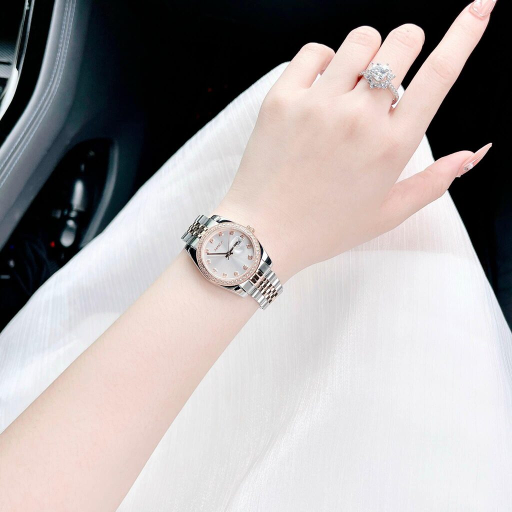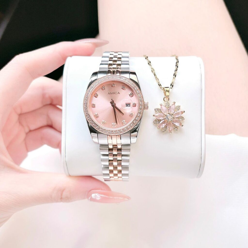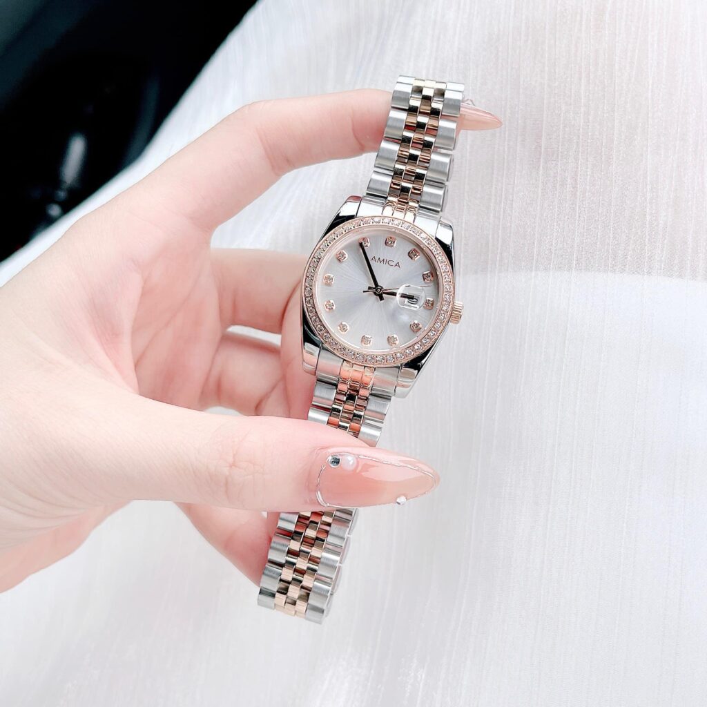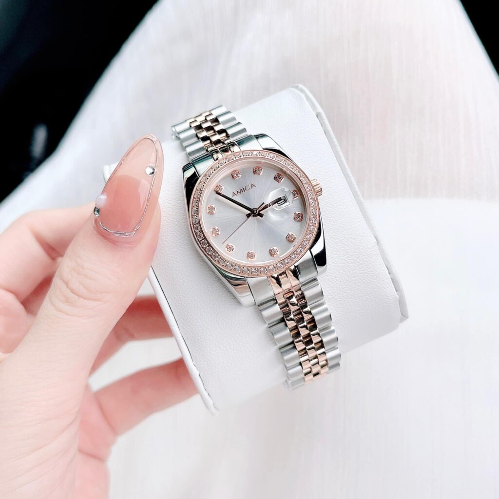 Đồng Hồ Amica Chính Hãng Nữ Rose Dial Pave Ladies Watch