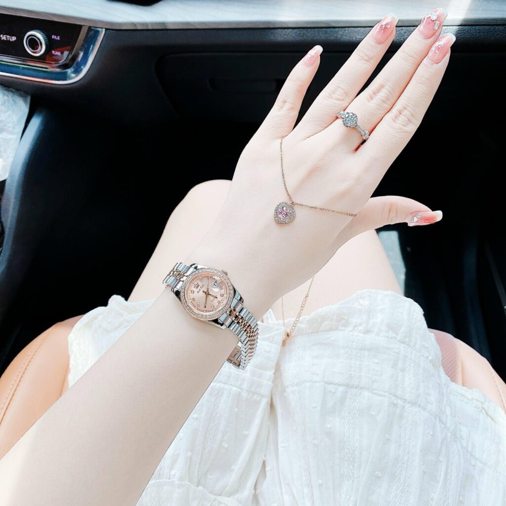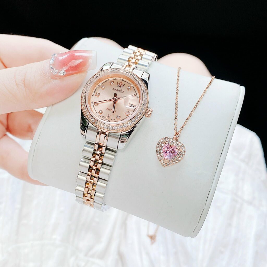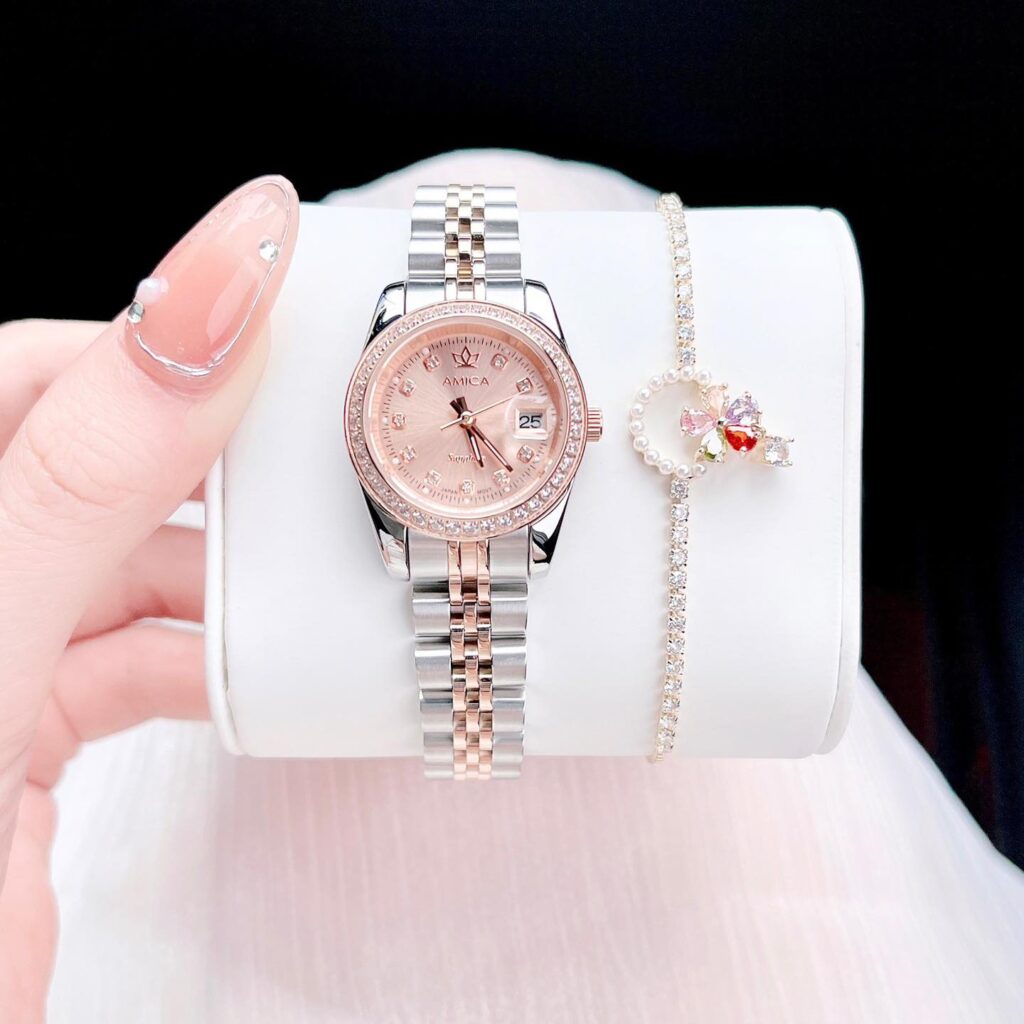 Đồng Hồ Amica Chính Hãng Nữ Rose Dial Pave Ladies Watch
