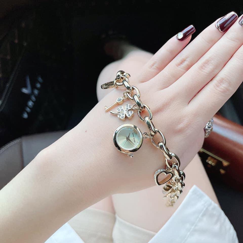 Đồng Hồ Anne KleinNữ Chính Hãng 10-7604CHRM Gold-tone Dial Gold Tone Charm Bracelet Ladies Watch