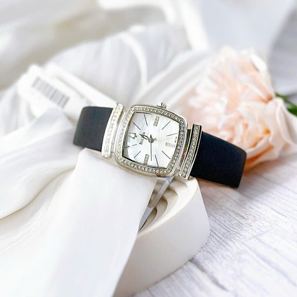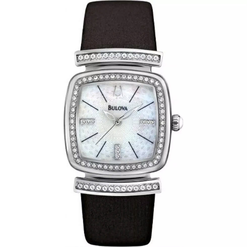Đồng Hồ Bulova Chính Hãng Nữ 96L194 Black Mother of Pearl Crystal Dial Leather Ladies Watch