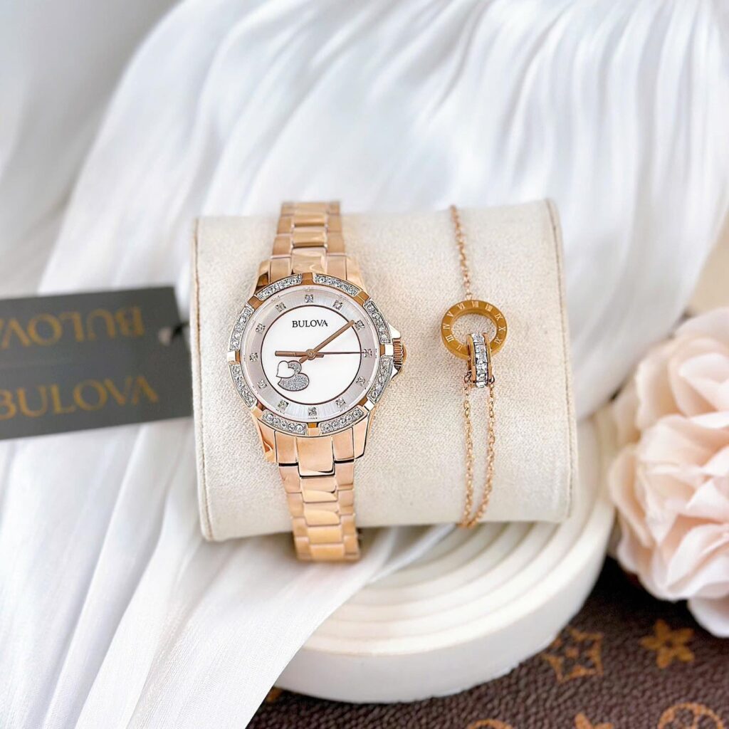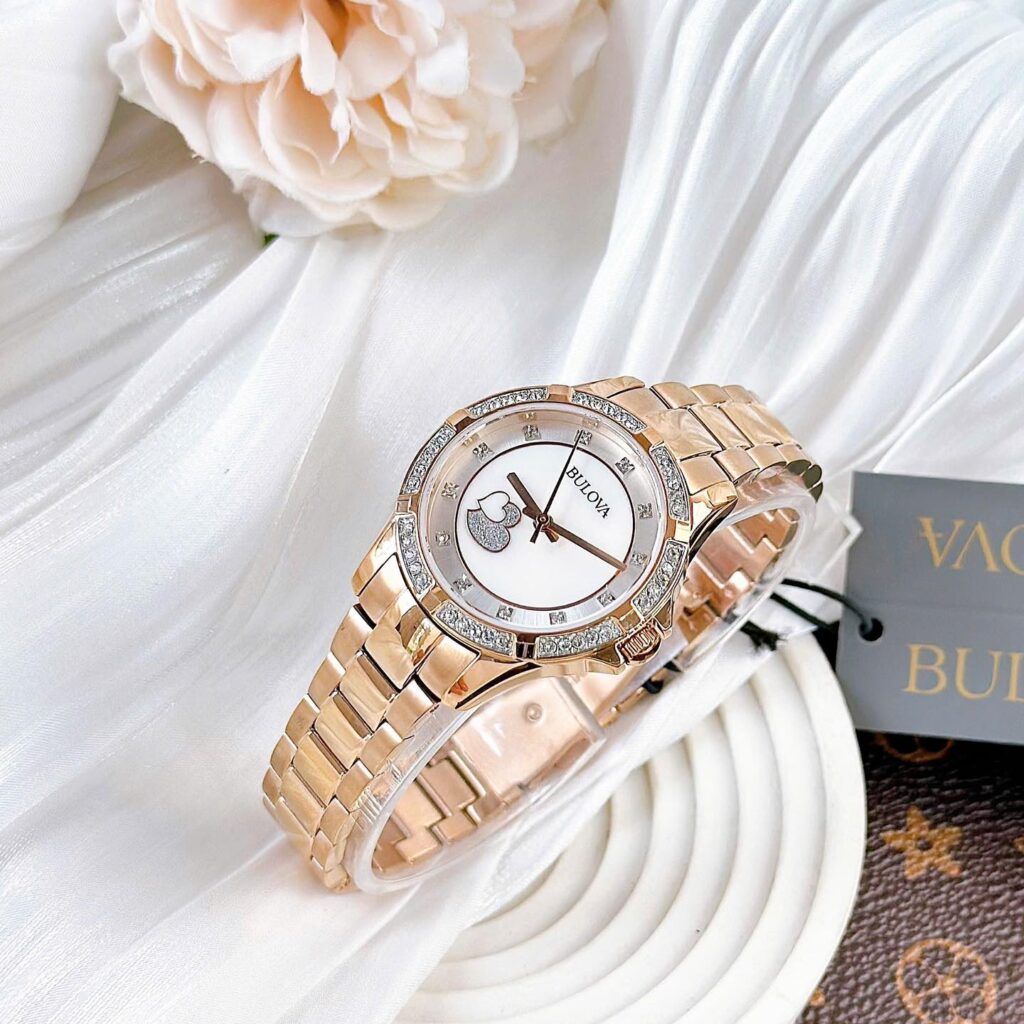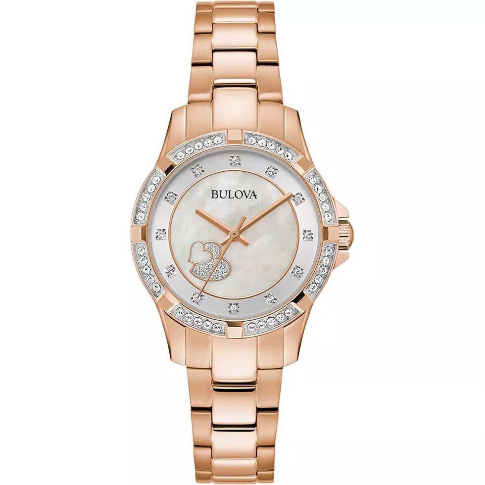 Đồng Hồ Bulova Chính Hãng Nữ 98L303 Crystal Accents Heart Motif Rose Gold Ladies Watch