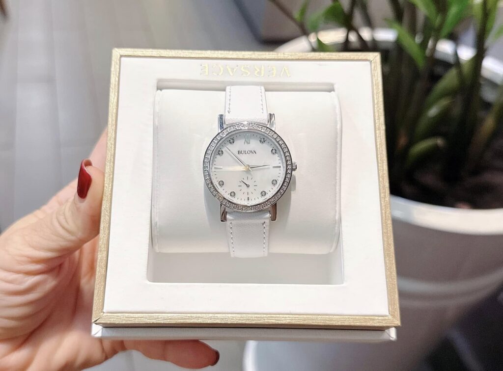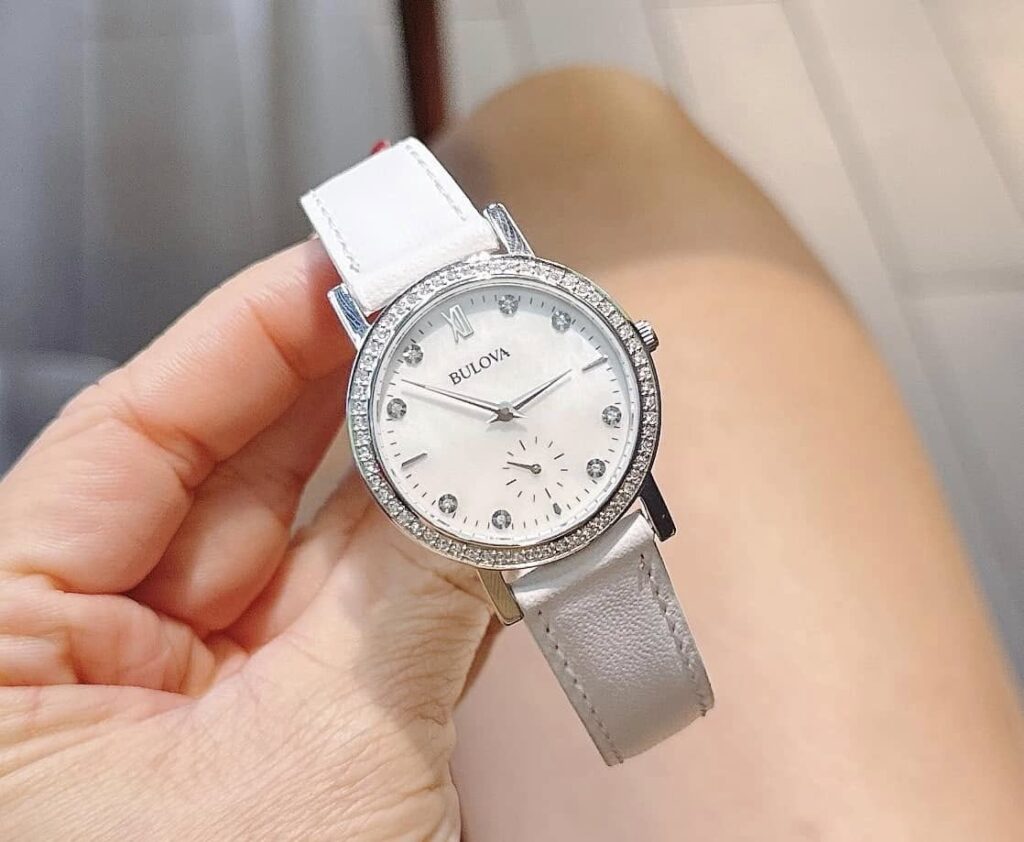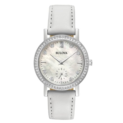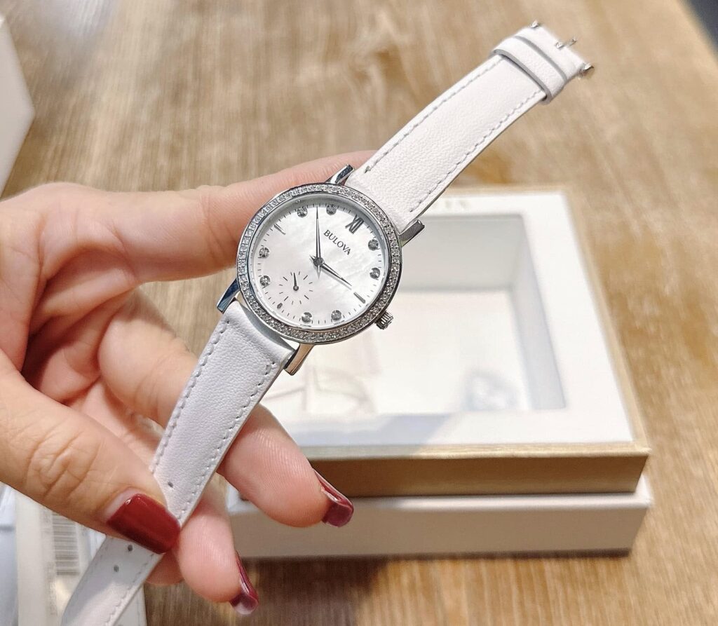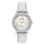 Đồng Hồ Bulova Chính Hãng Nữ 96L245 Crystal White Leather Strap Watch