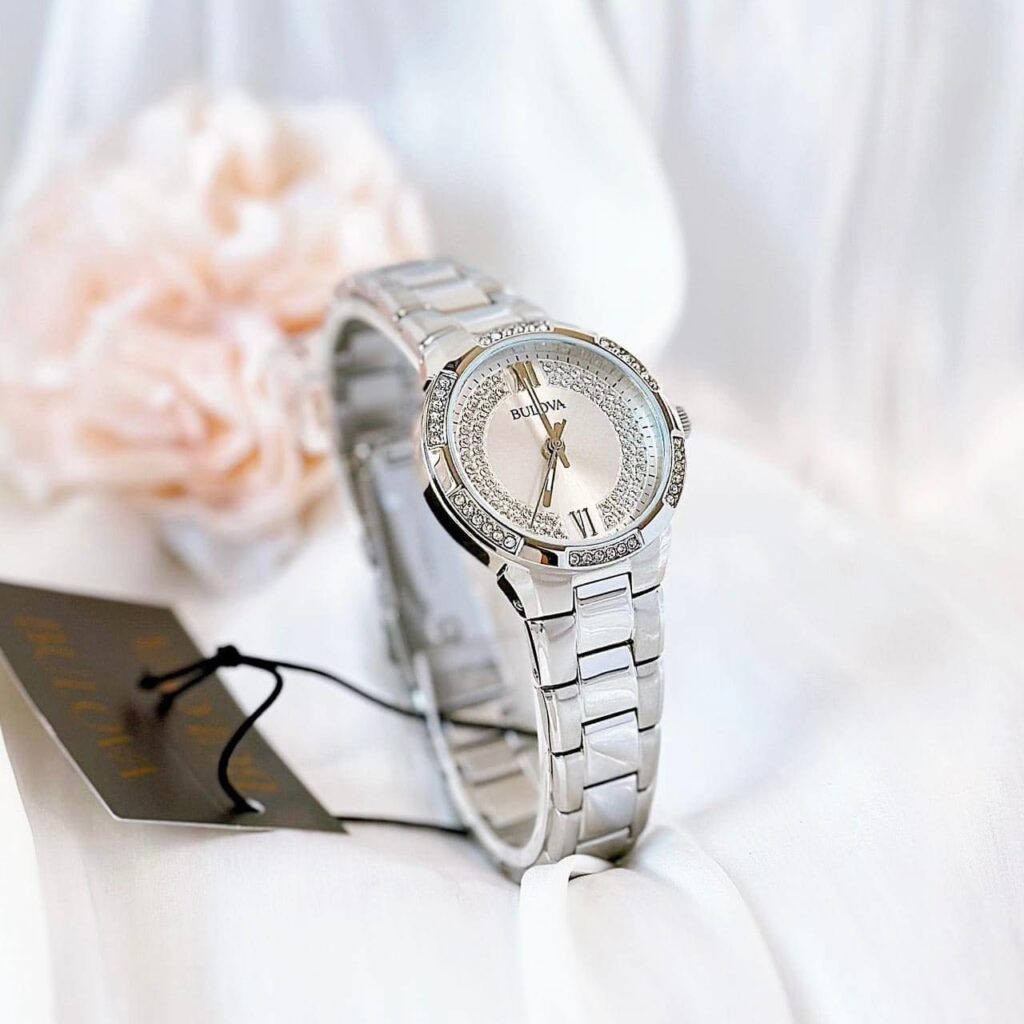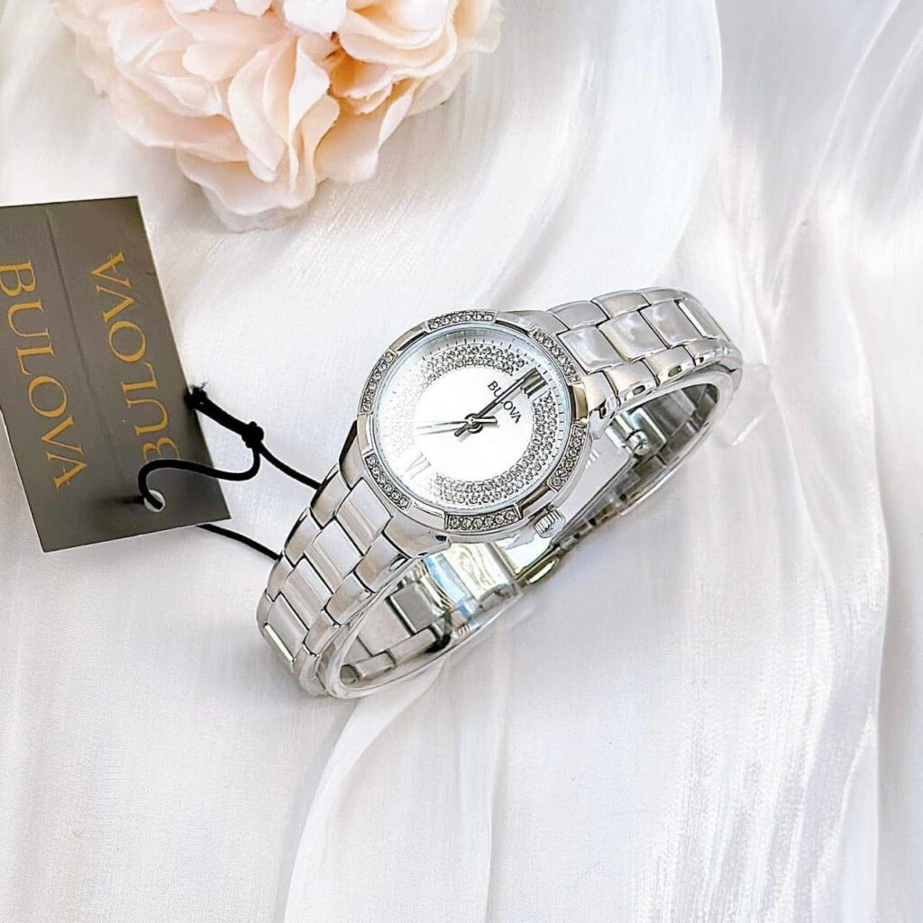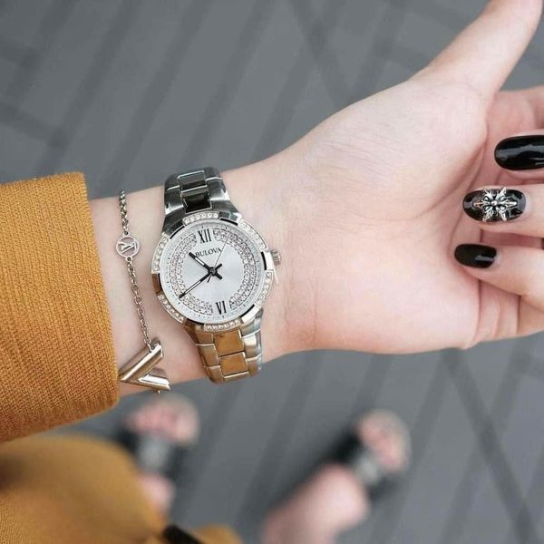 Đồng Hồ Bulova Chính Hãng Nữ 96L249 Crystal Accent Quartz Silver Stainless Steel Watch