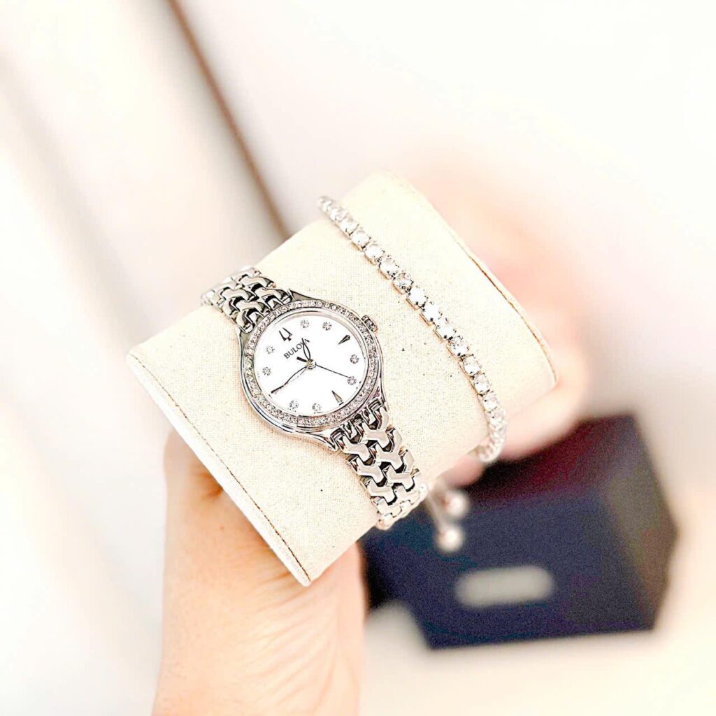 Đồng Hồ Bulova Chính Hãng Nữ 96l312 Stainless Steel Watch with Crystal Accents 29mm