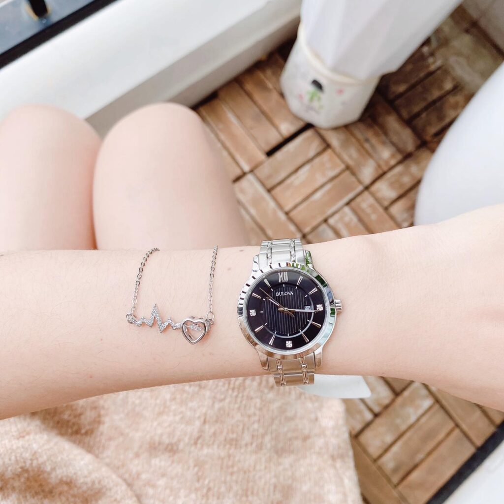 Đồng Hồ Bulova Chính Hãng Nữ 96P185 Quartz Diamond Accent Date Indicator Black Dial Ladies Watch