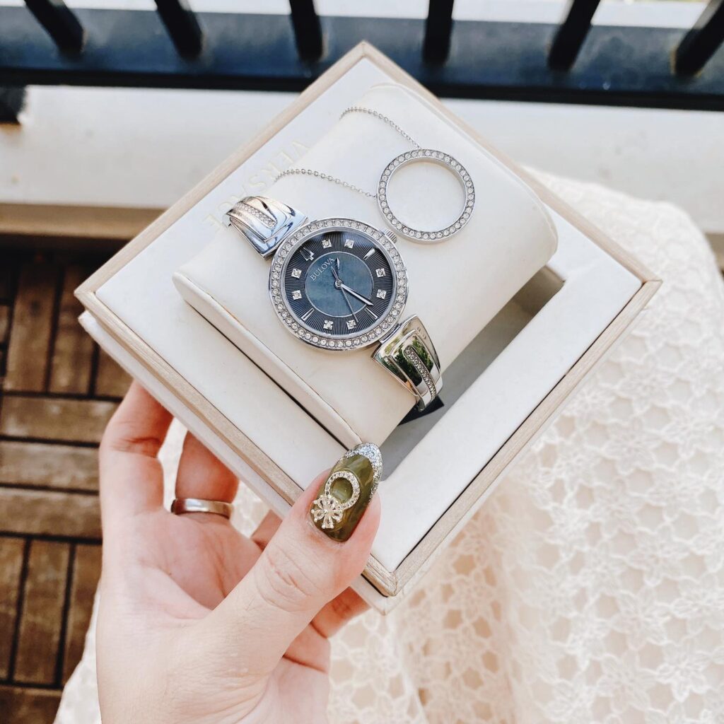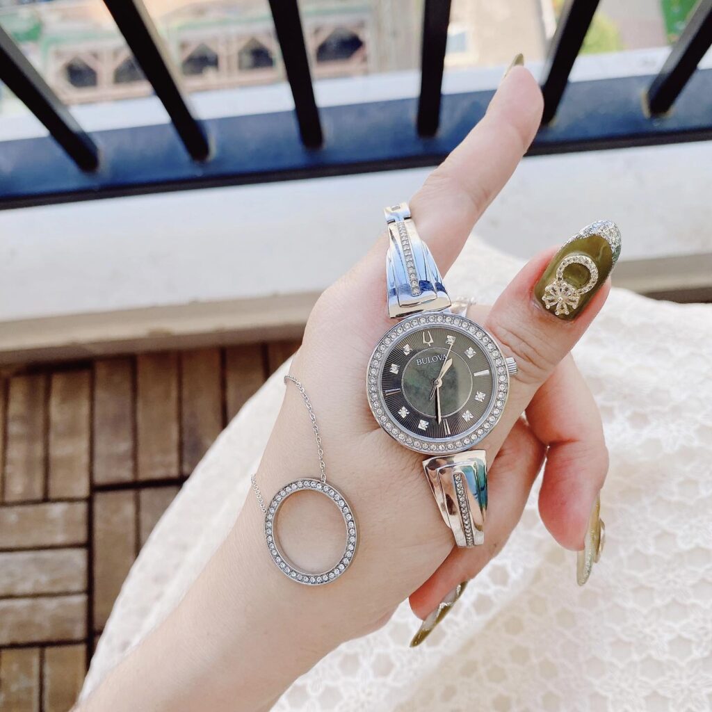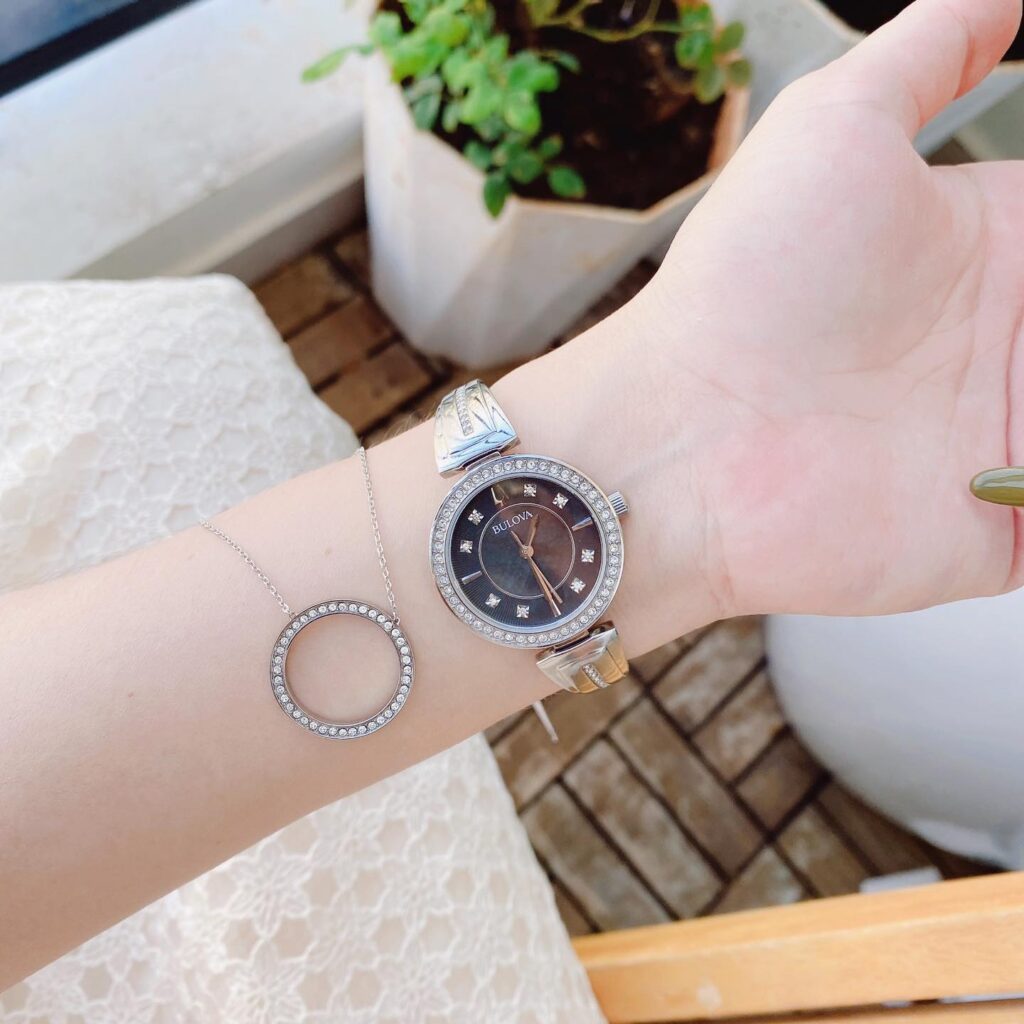 Đồng Hồ Bulova Chính Hãng Nữ 96X152 Quartz Crystal Accent Bangle Ladies Watch
