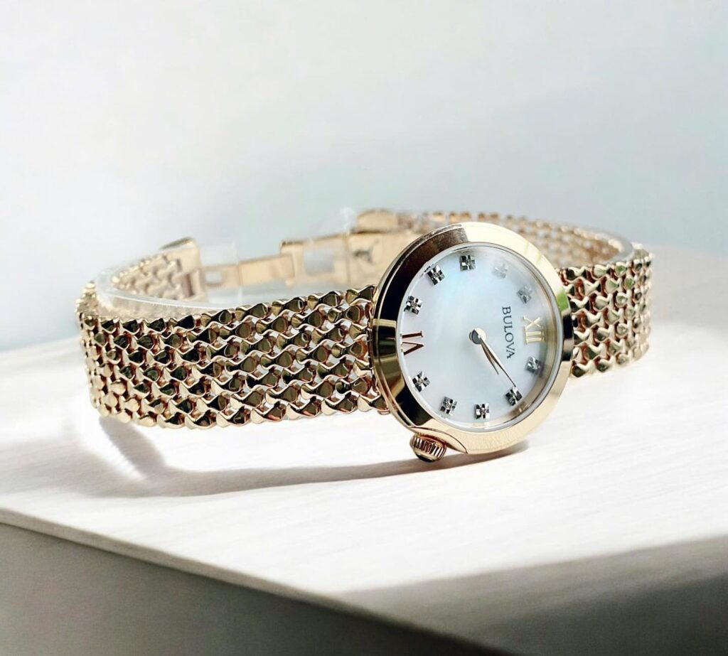 Đồng Hồ Bulova Chính Hãng Nữ 97P114 Diamond Gold Mesh Style Ladies Watch