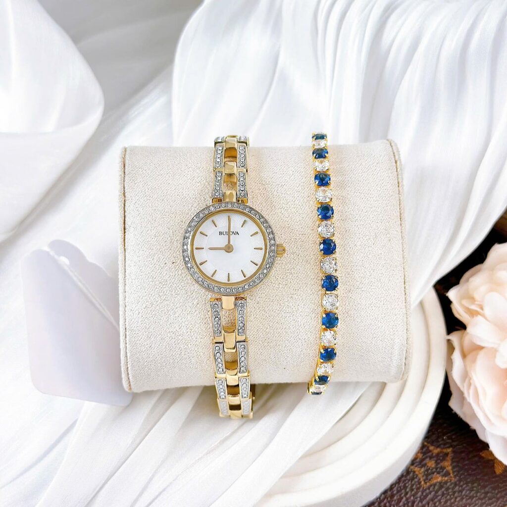Đồng Hồ Bulova Chính Hãng Nữ 98l213 Crystal Accent Gold-Tone Watch 23mm