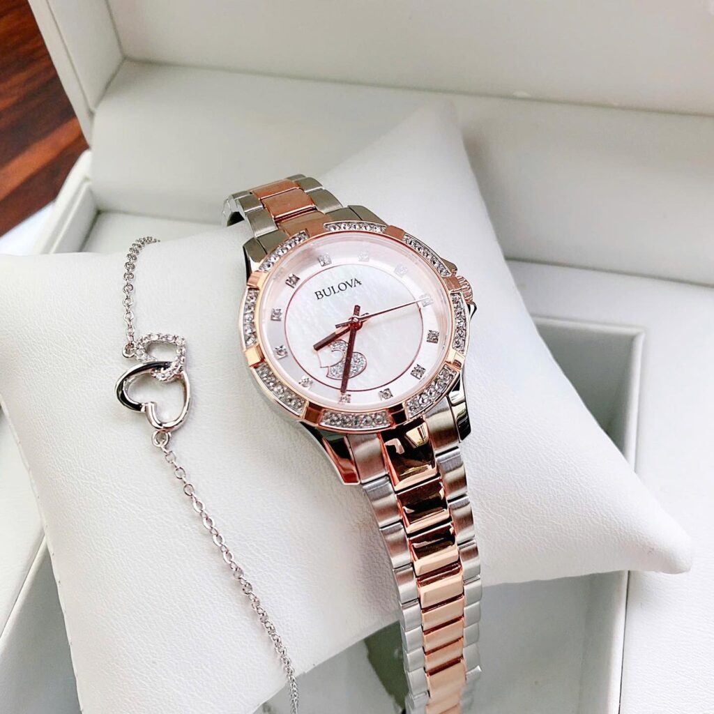 Đồng Hồ Bulova Chính Hãng Nữ 98L233 Women’s Quartz Silver Rose Gold Watch