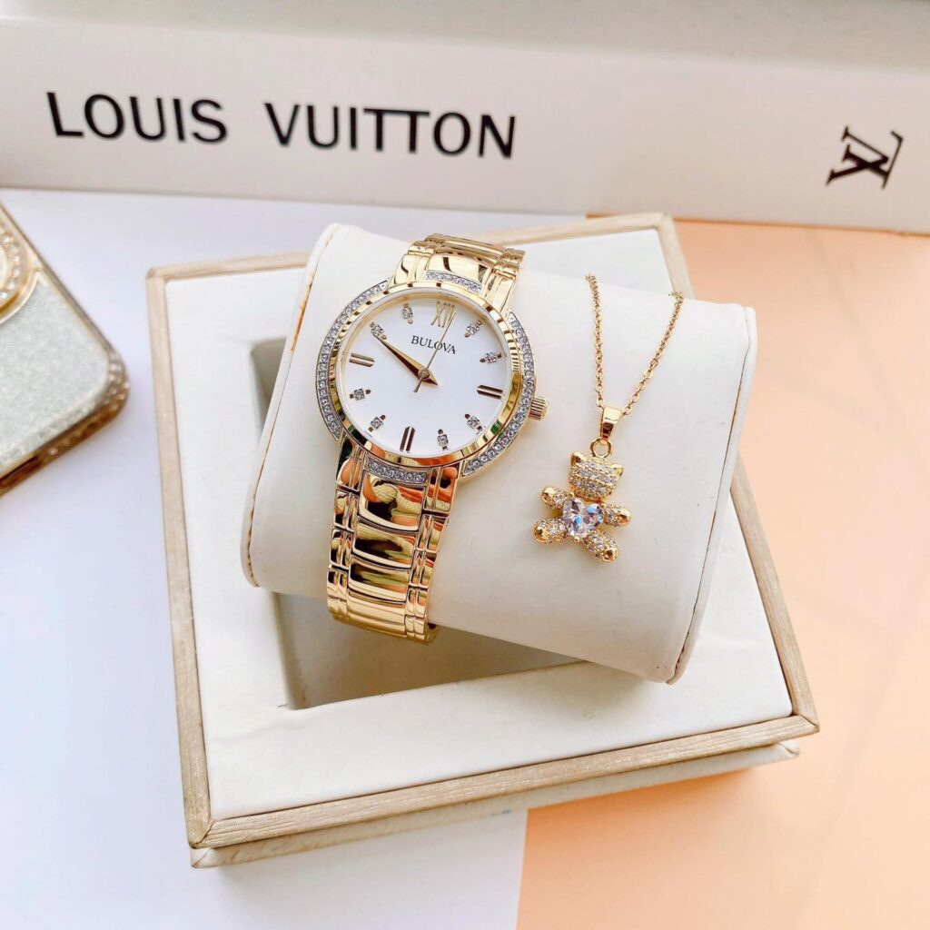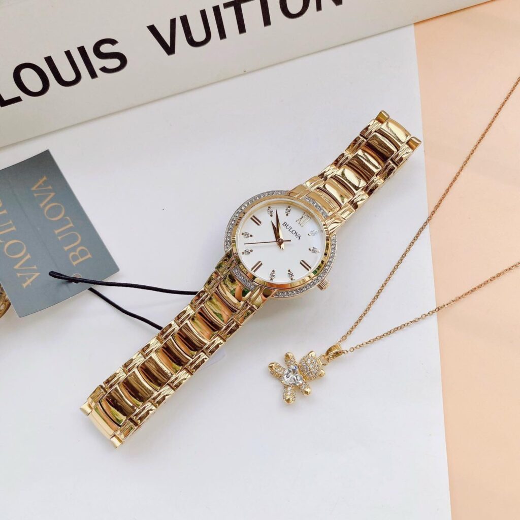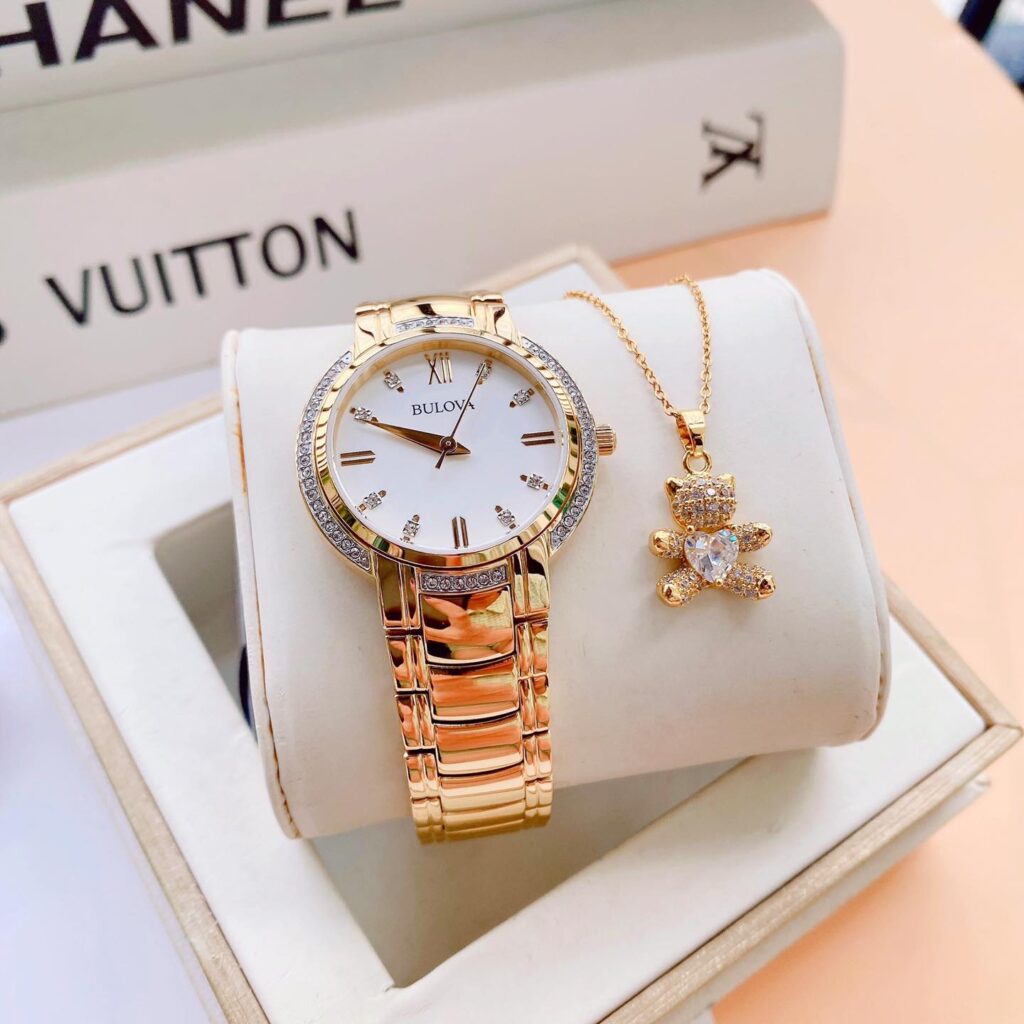 Đồng Hồ Bulova Chính Hãng Nữ 98L280 Crystal Accent Quartz Gold-Tone Ladies Watch