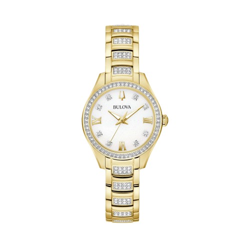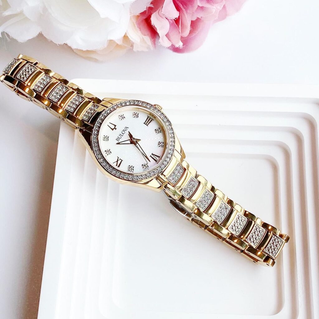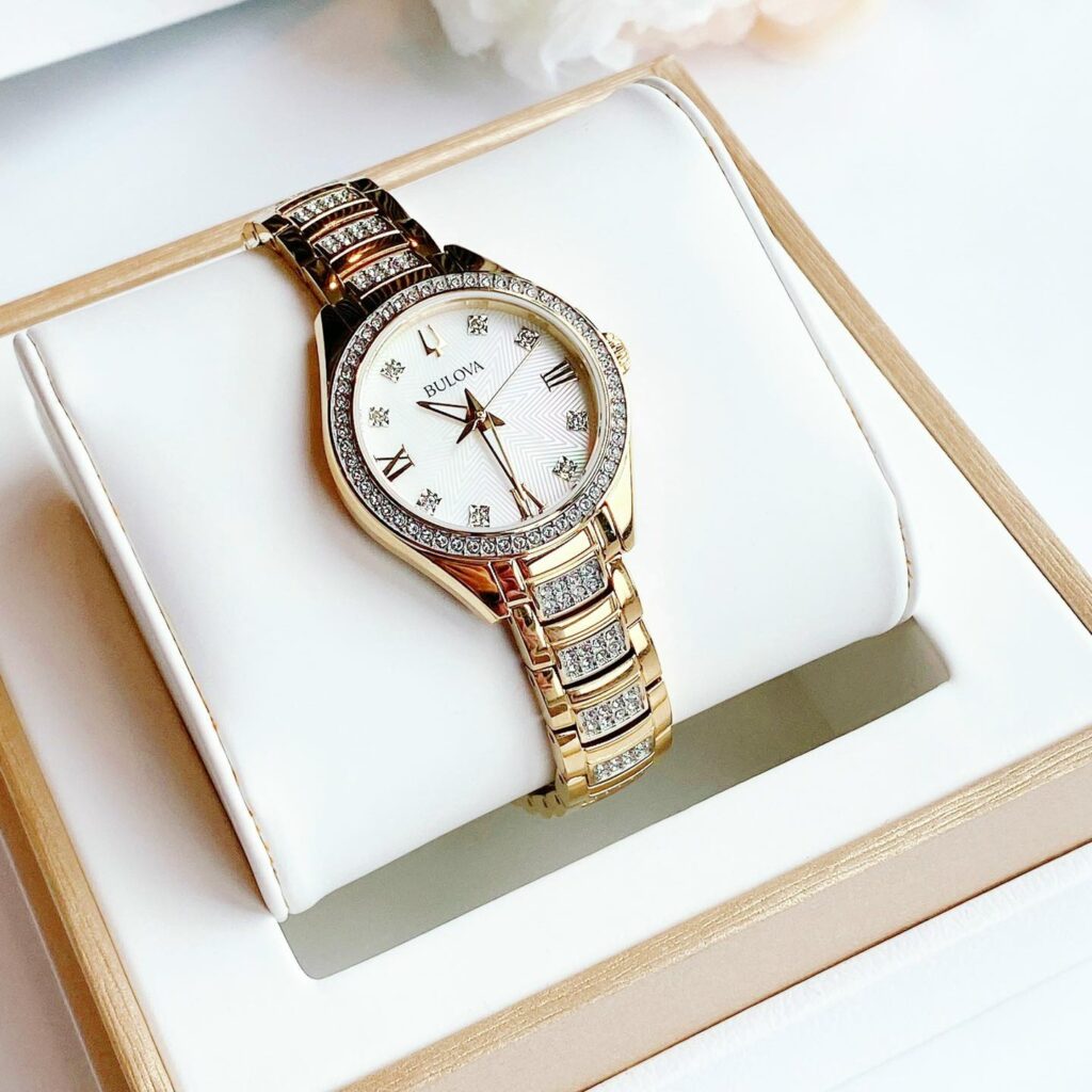 Đồng Hồ Bulova Chính Hãng Nữ 98L306 Crystal Quartz White Dial Ladies Watch