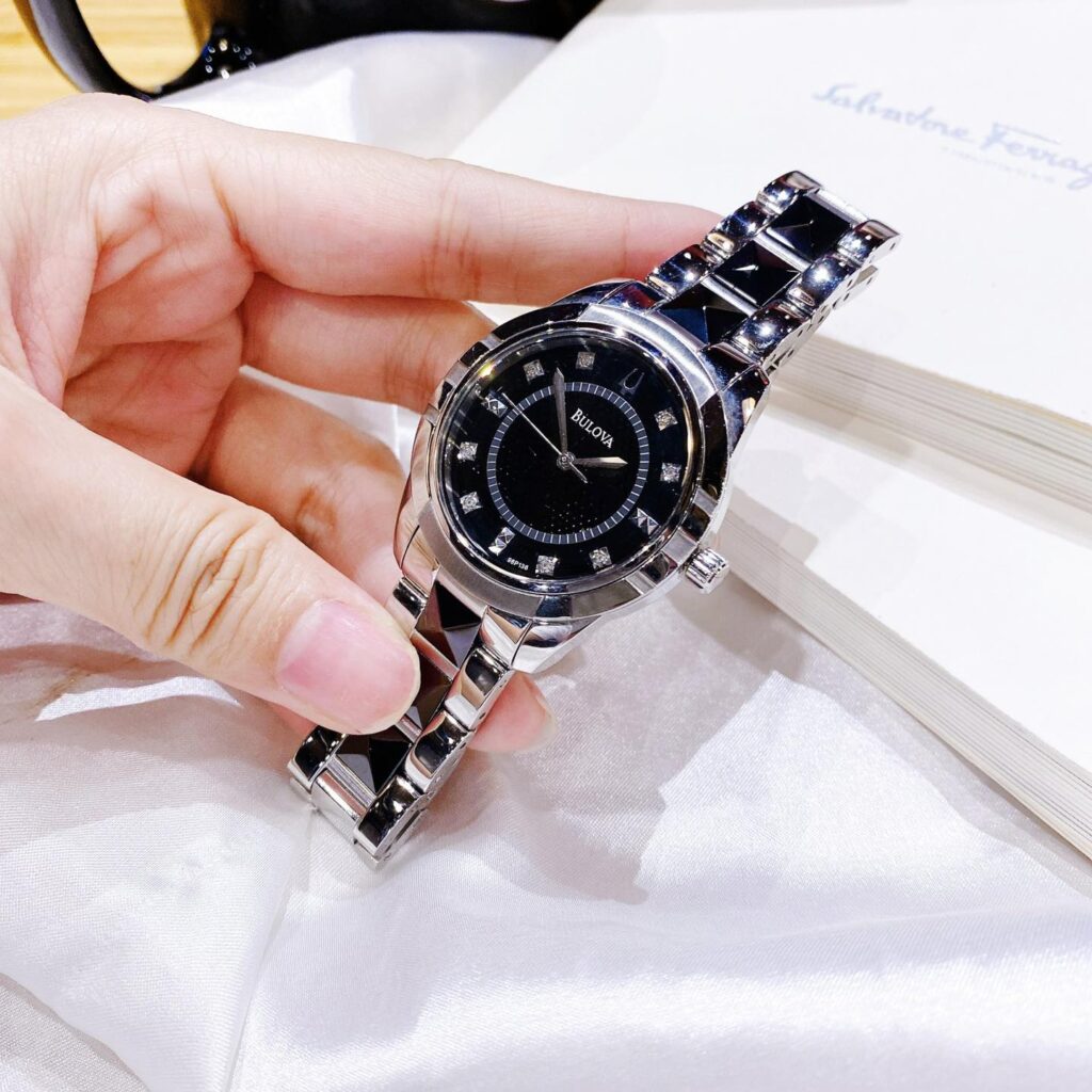 Đồng Hồ Bulova Chính Hãng Nữ 98P136 Diamond Black Dial Steel and Ceramic Ladies Watch