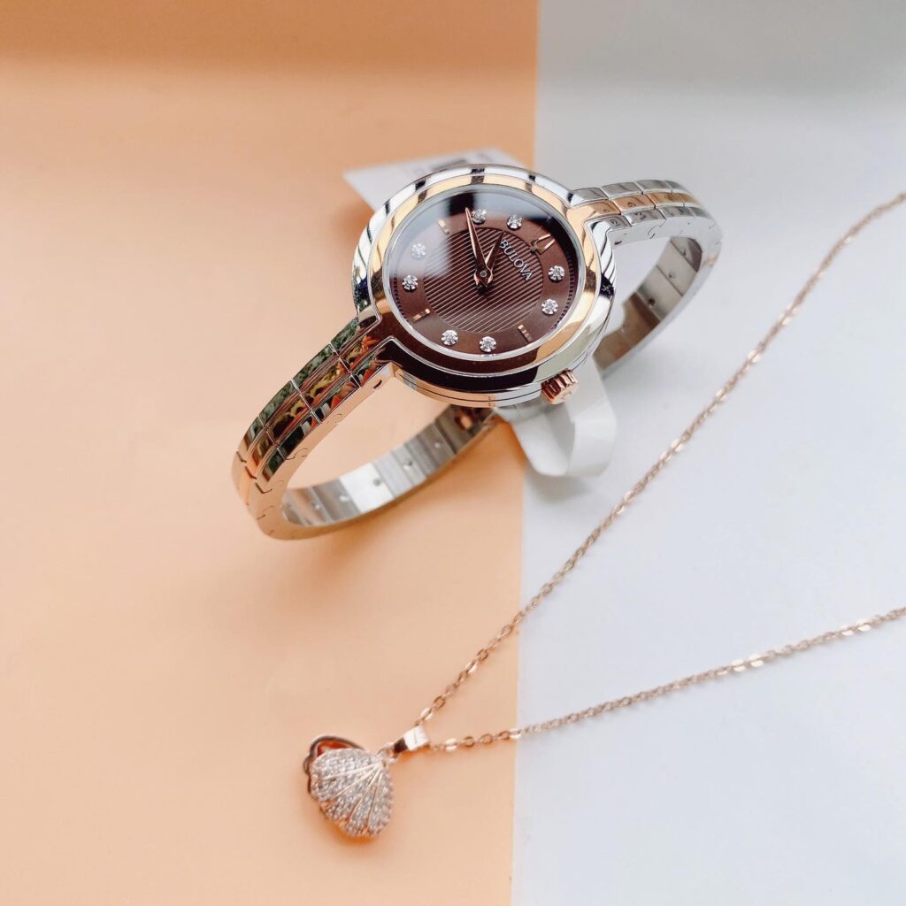 Đồng Hồ Bulova Chính Hãng Nữ 98P194 Rhapsody Quartz Diamond Brown Dial Ladies Watch