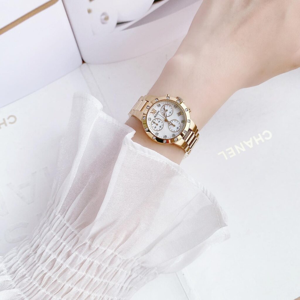 Đồng Hồ Bulova Chính Hãng Nữ 98R216 Diamonds Chronograph Gold Tone Ladies Watch