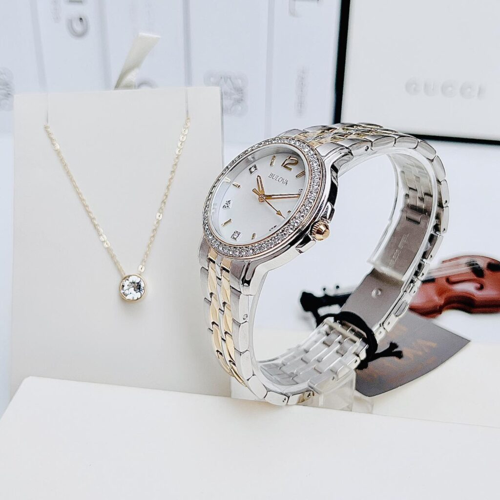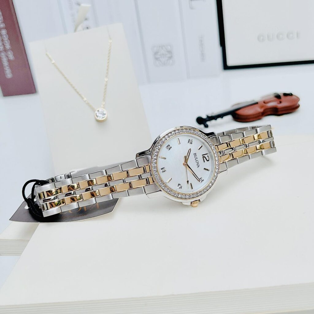 Đồng Hồ Bulova Chính Hãng Nữ Two Tone Quartz Diamond Crystal Ladies Watch