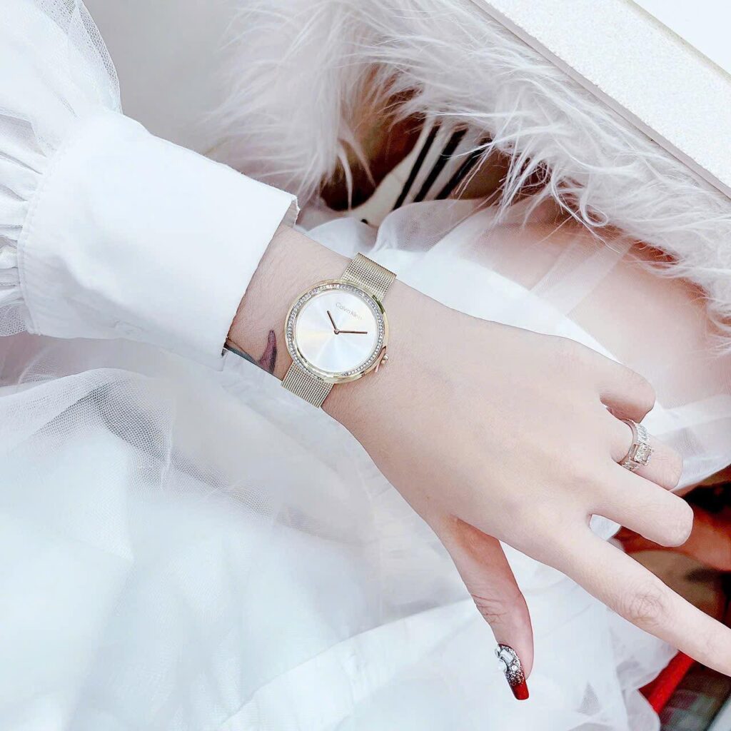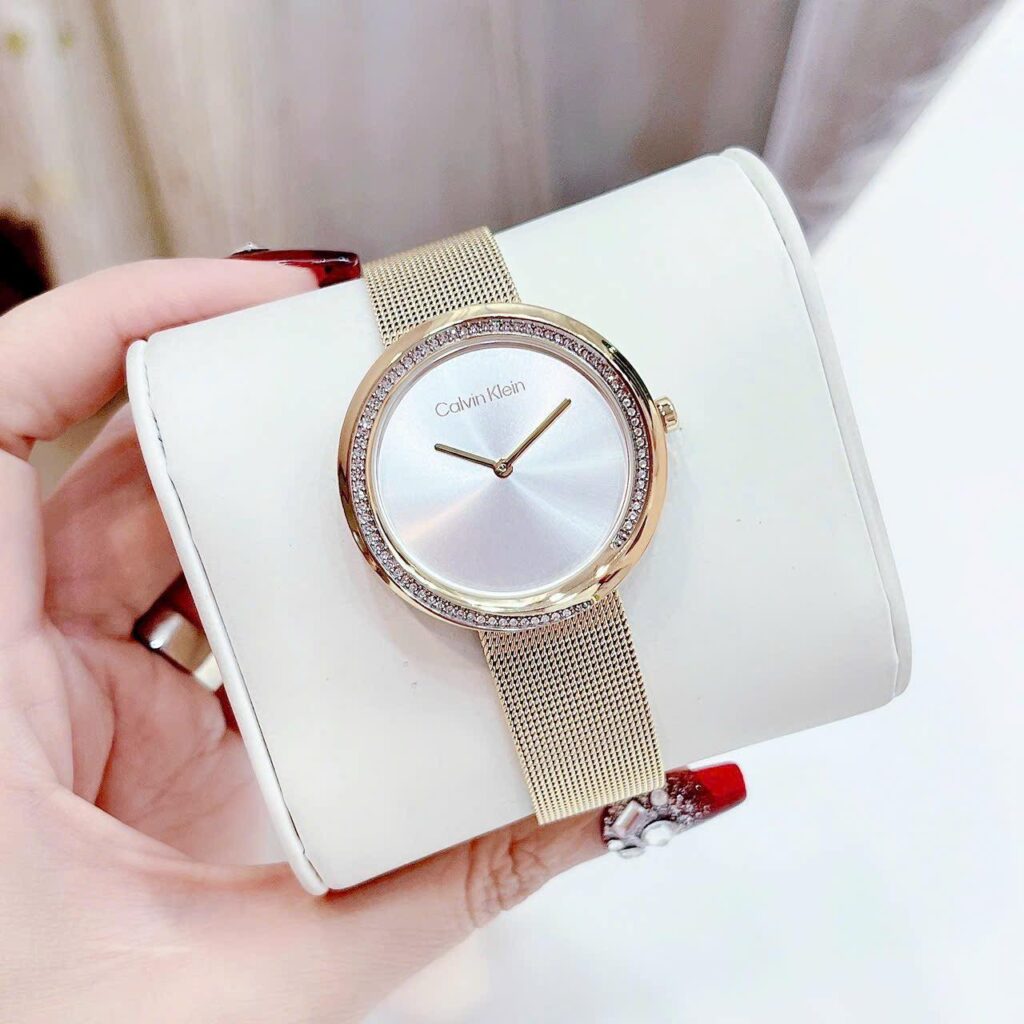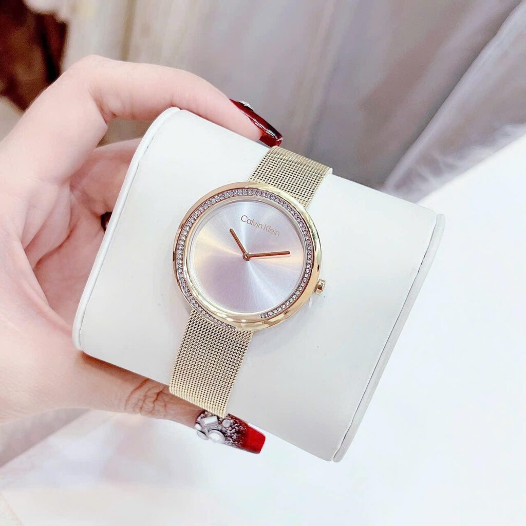 Đồng Hồ Calvin Klein Chính Hãng Nữ CK 25200150 Gold Tone Twisted Bezel Ladies’ Watch