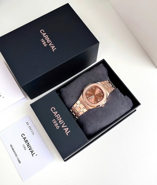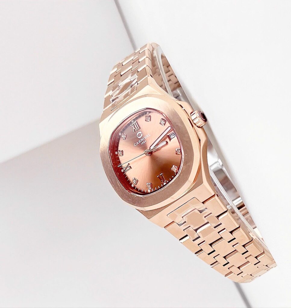 Đồng Hồ Carnival Chính Hãng Nữ 8160L-VH-N Brown Dial Rose Gold Steel Women’s Watch