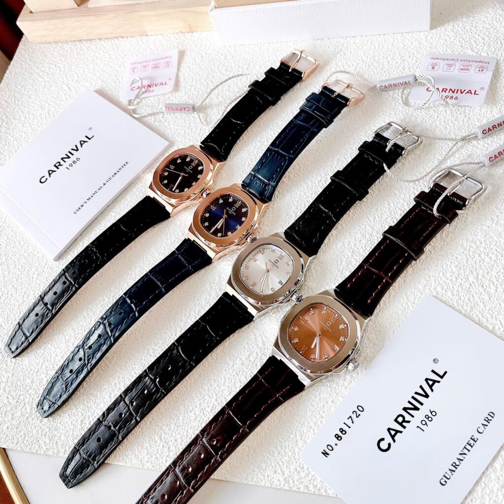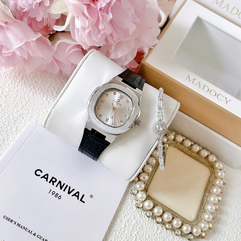 Đồng Hồ Carnival Chính Hãng Nữ 8160L-VT-DD-T Quartz Black Dial Square Women’s Watch