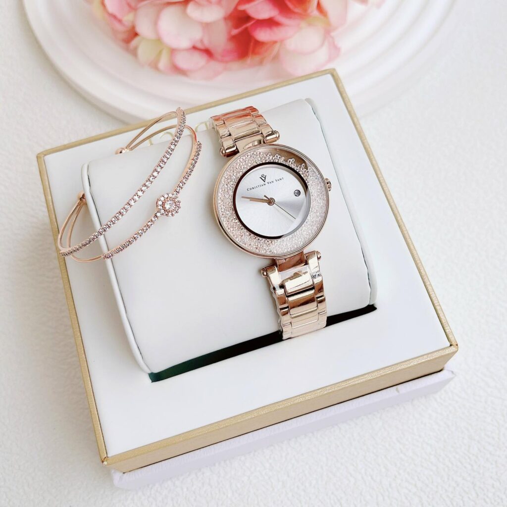 Đồng Hồ Christian Van Sant Nữ Chính Hãng CV1214 Women’s Dazzle Rose Gold Dial Watch
