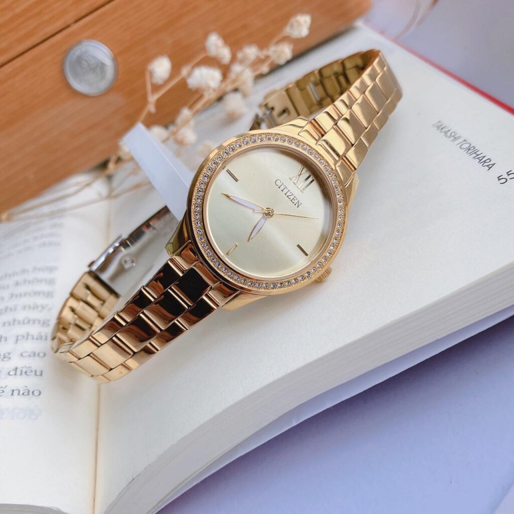 Đồng Hồ Citizen Chính Hãng Nữ EL3088-59P Quartz Crystal Gold Ladies Watch