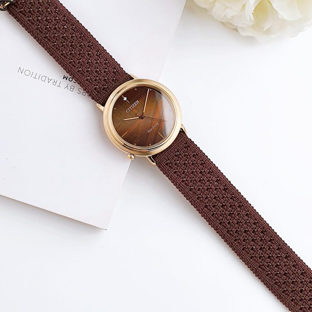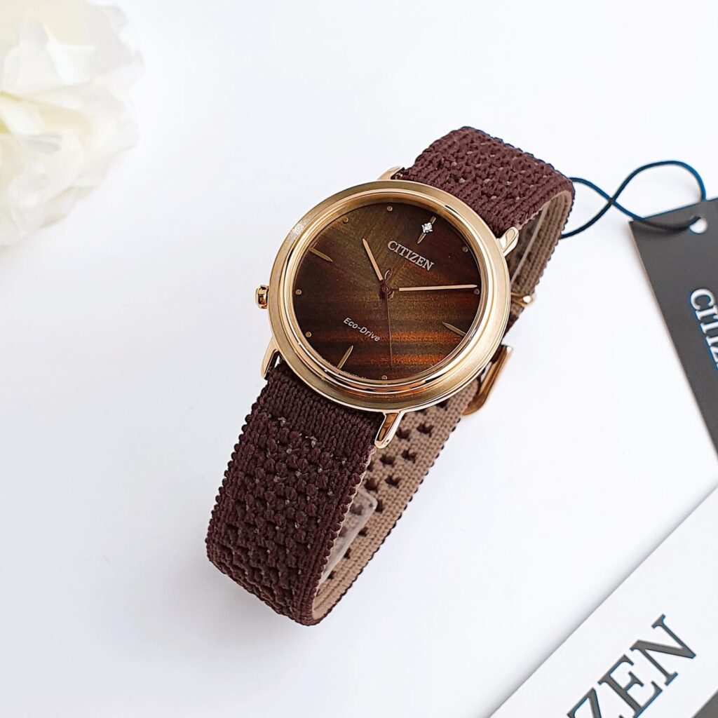 Đồng Hồ Citizen Chính Hãng Nữ EM1003-05X Ecosphere Eco-Drive Brown Ladies Watch