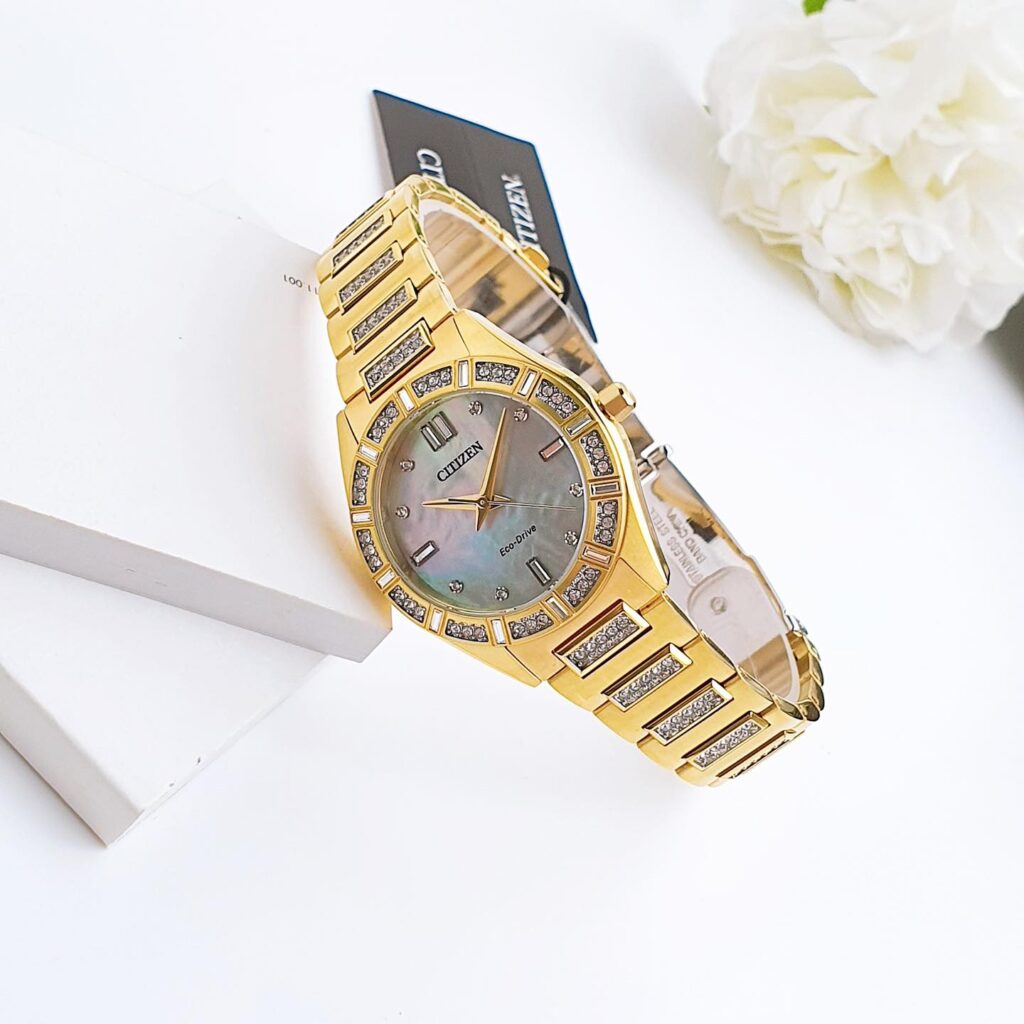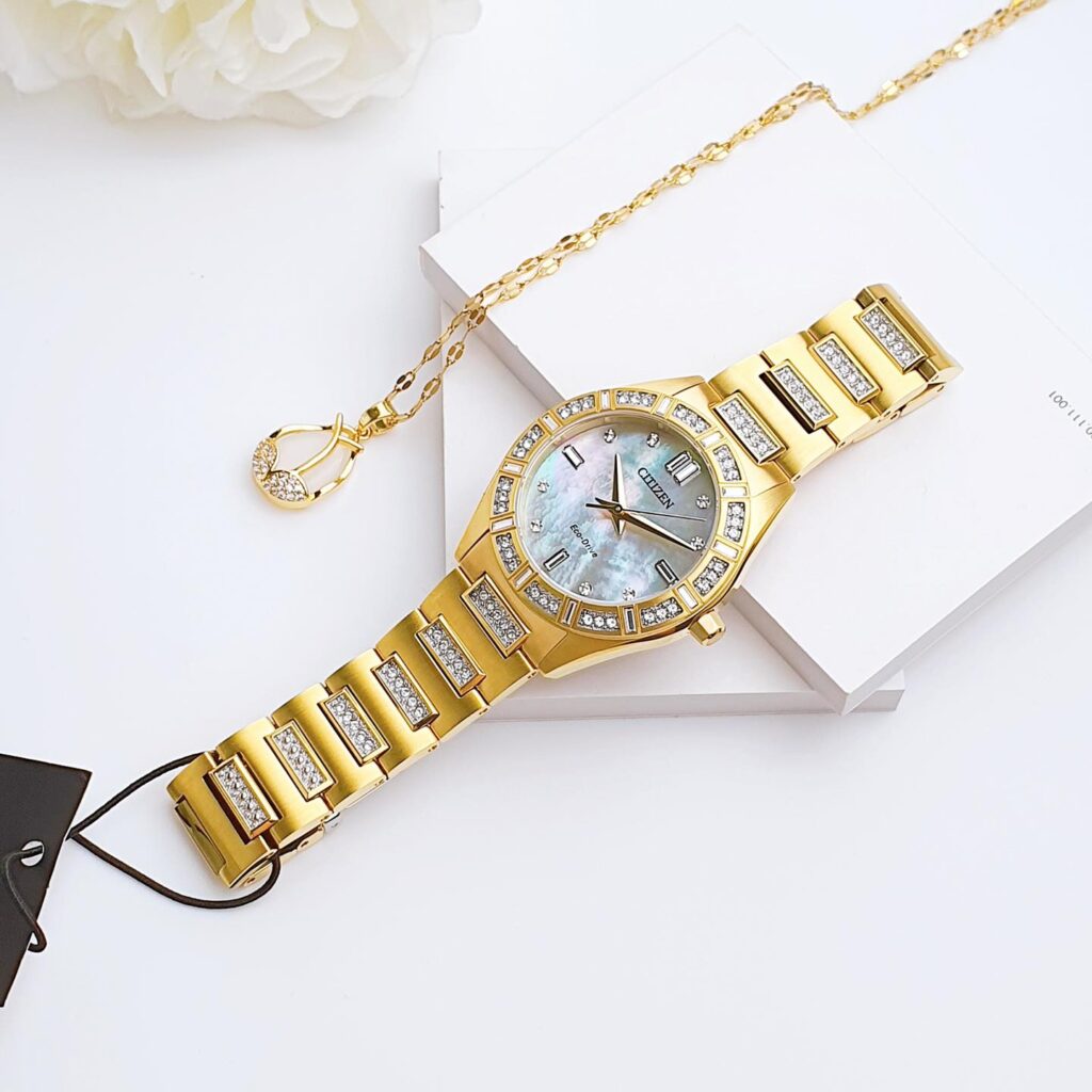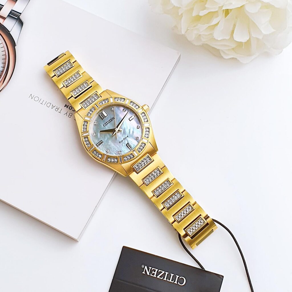 Đồng Hồ Citizen Chính Hãng Nữ EM1022-51D Silhouette Crystal Beige Dial Stainless Steel Ladies Watch