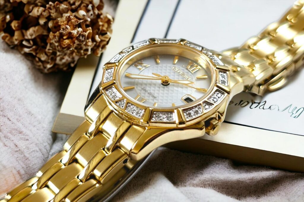 Đồng Hồ Citizen Chính Hãng Nữ EW2362-55A Diamond Silver Dial Yellow Gold-tone Ladies Watch