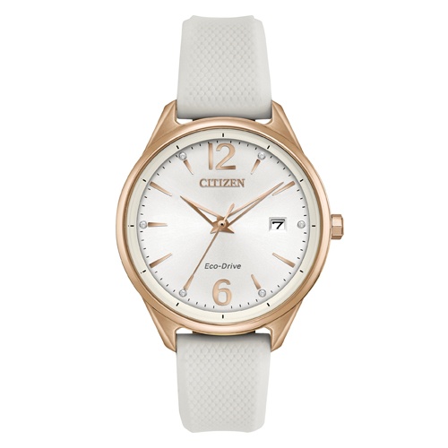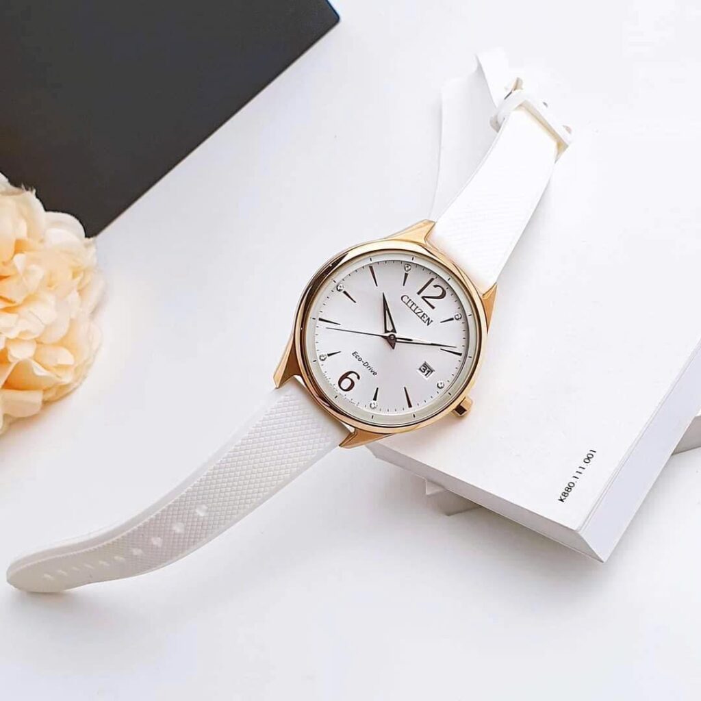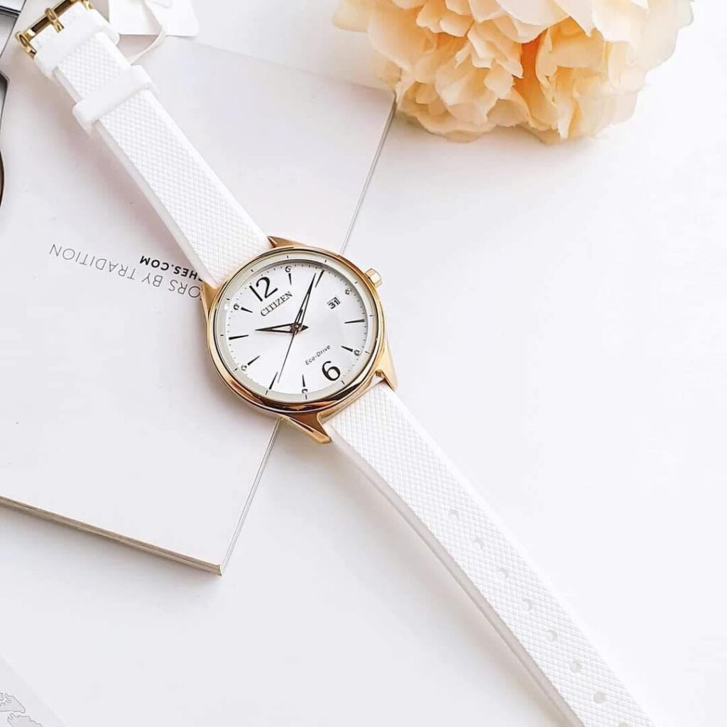 Đồng Hồ Citizen Chính Hãng Nữ FE6103-00A Chandler Eco-Drive Silver Dial White Silicone Ladies Watch