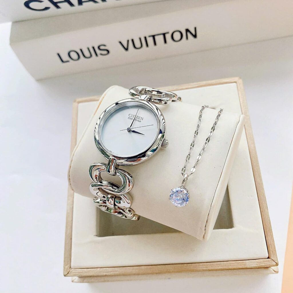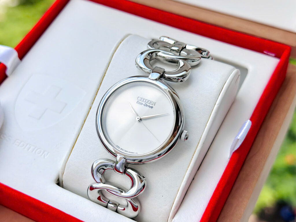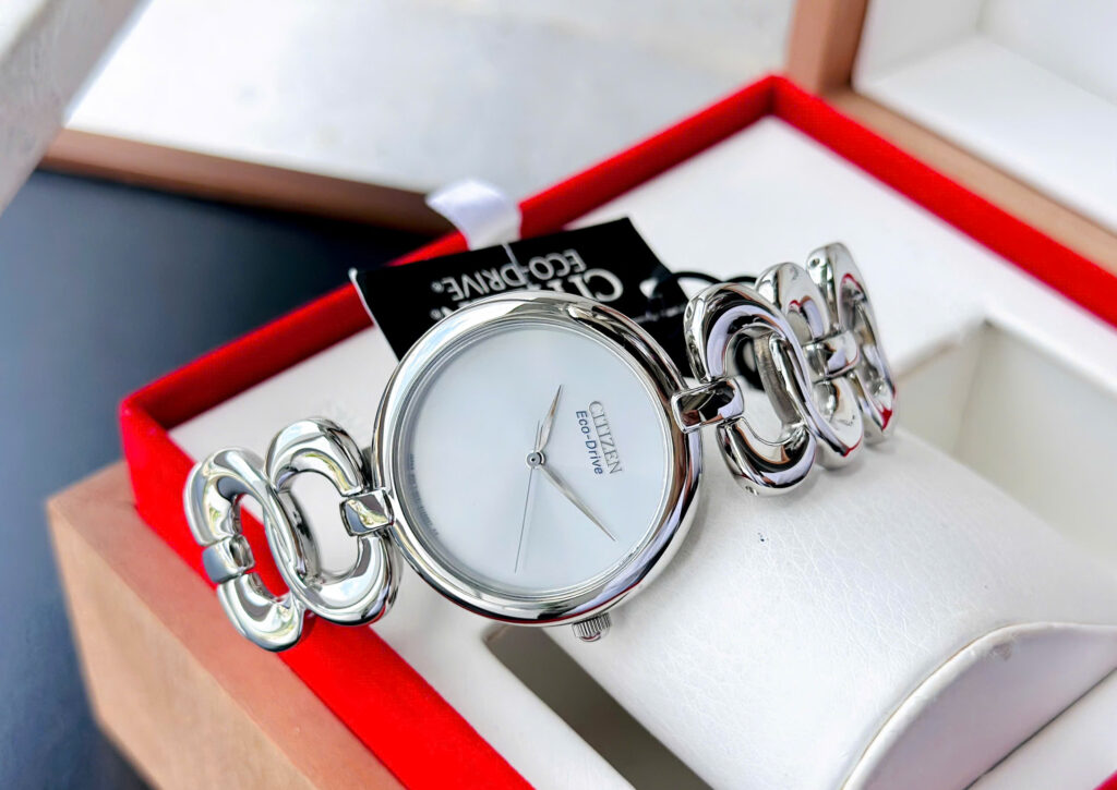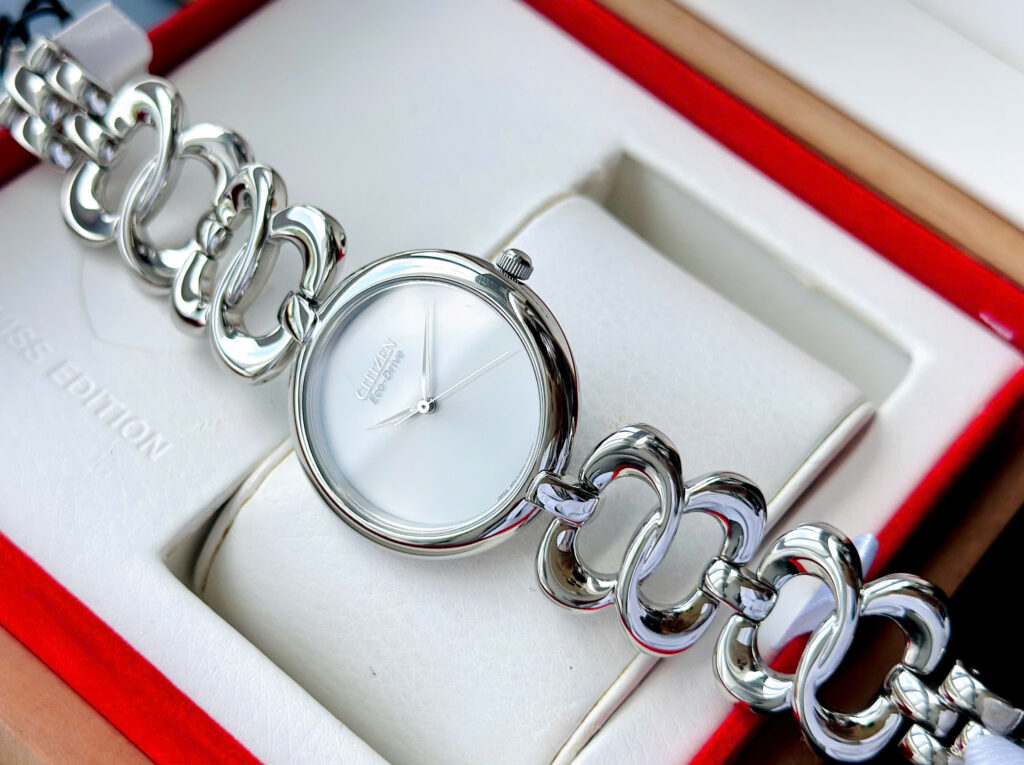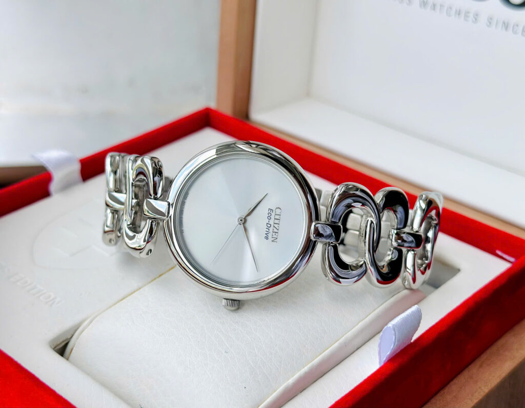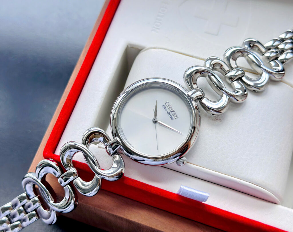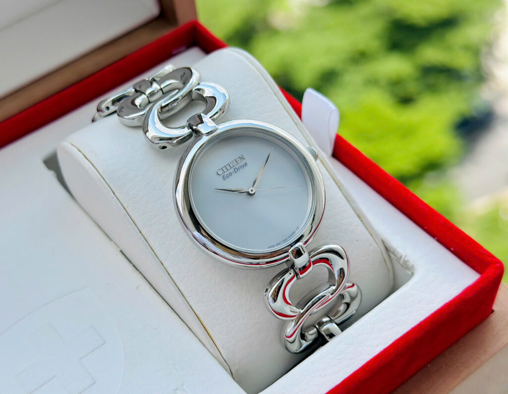 Đồng Hồ Citizen Nữ Chính Hãng EM0220-53A Eco-Drive Silhouette Link Bracelet Ladies Watch