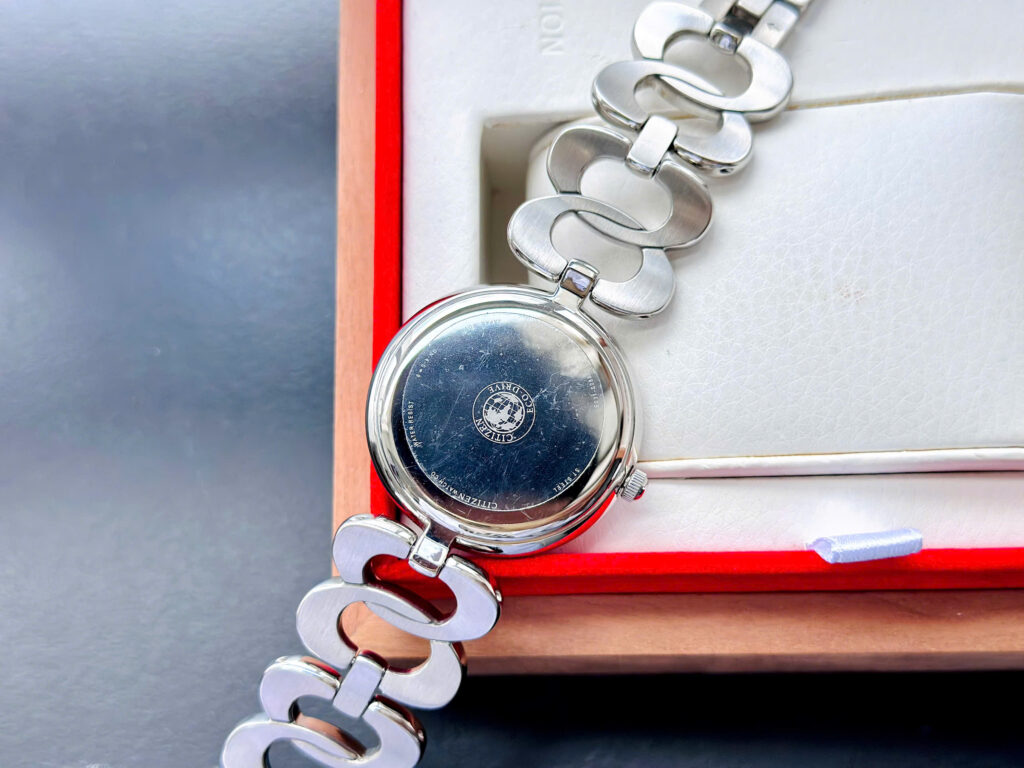 - Chỉ bảo hành thay thế mới cho những linh kiện, phụ tùng bị hỏng do lỗi của nhà sản xuất – không thay thế bằng một chiếc đồng hồ khác.Những đồng hồ có biểu hiện chạy sai giờ (nhanh hoặc chậm hơn), đứng máy và các lỗi khác thuộc về chức năng của bộ máy đồng hồ sẽ được áp dụng chế độ bảo hành của chúng tôi. Chế độ bảo hành của chúng tôi KHÔNG BAO GỒM các hư hại bên ngoài của đồng hồ.