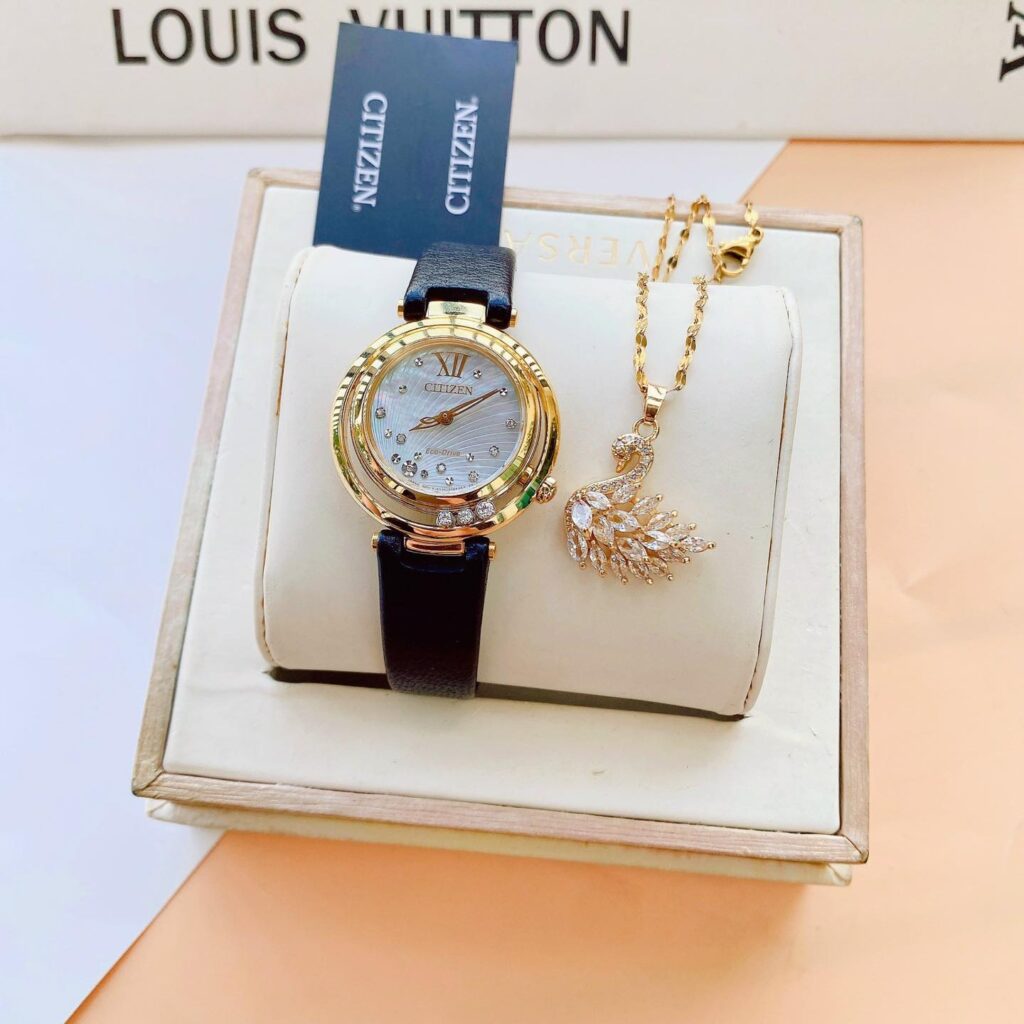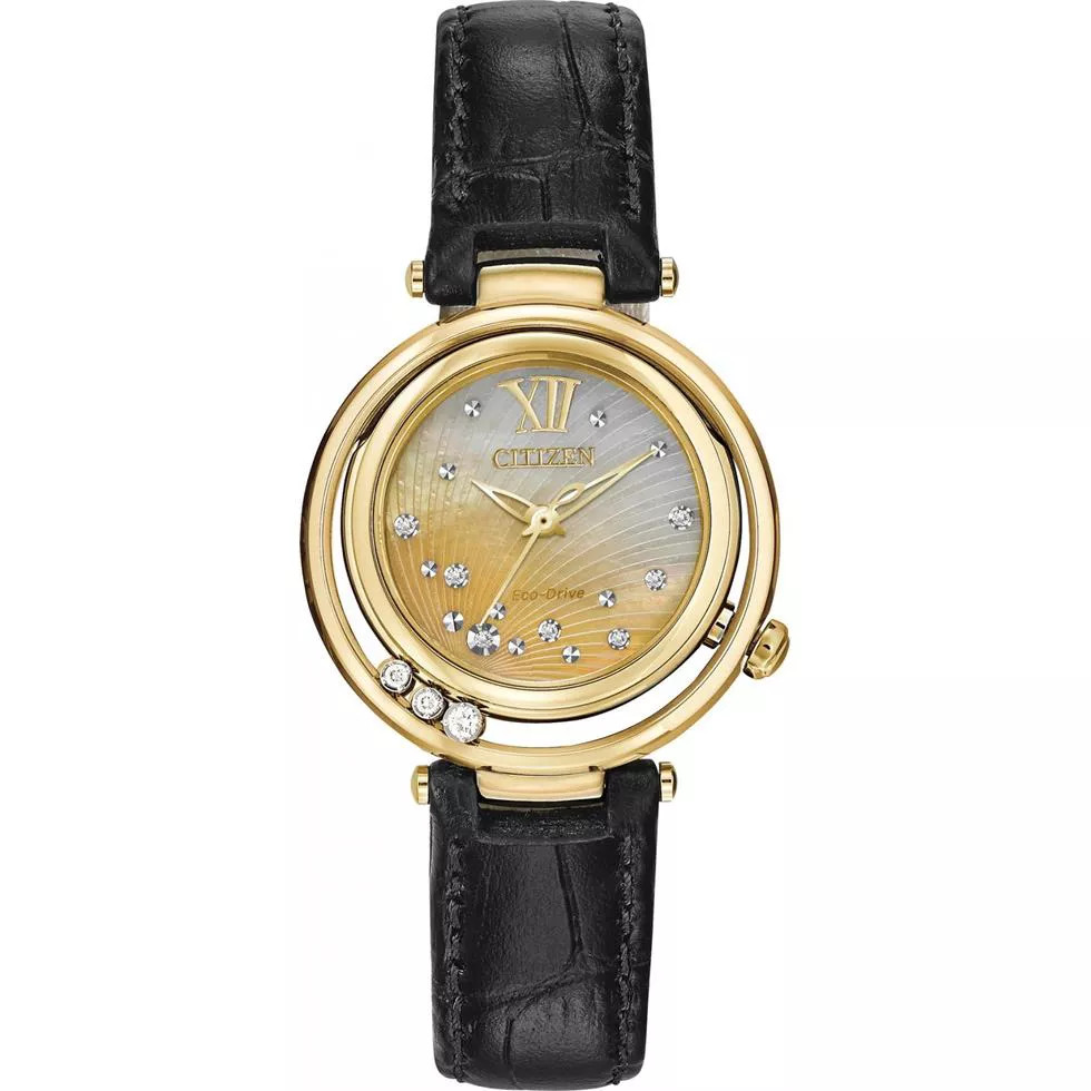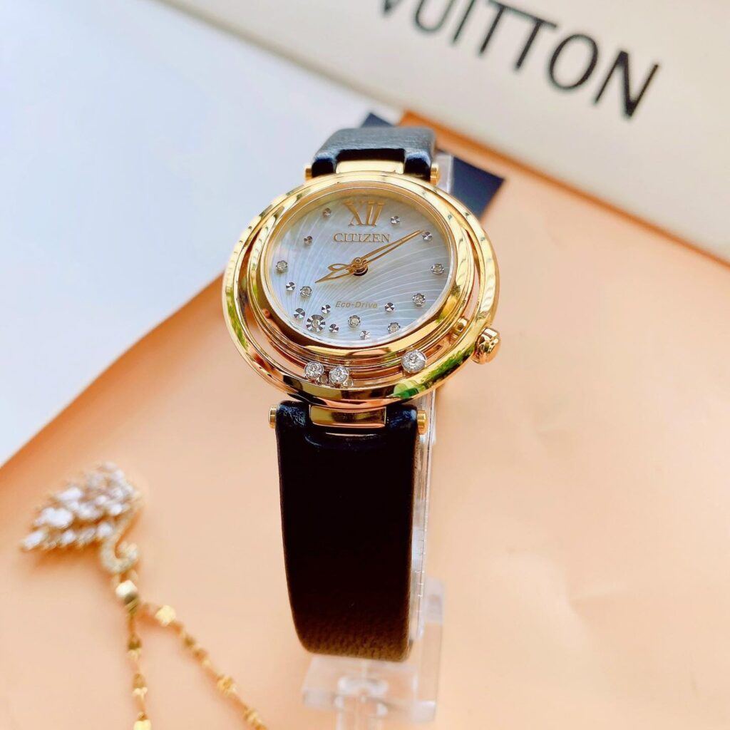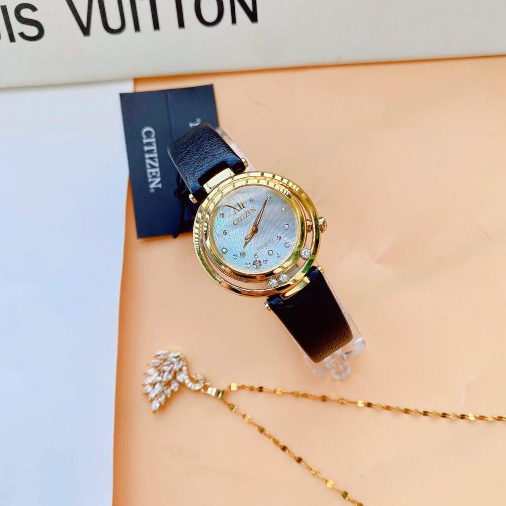 Đồng Hồ Citizen. Nữ Chính Hãng EM0322-29D Sunrise Eco-Drive Diamond Black Leather