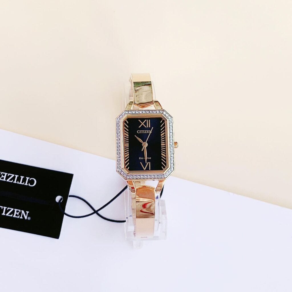 Đồng Hồ Citizen Nữ Chính Hãng EM0982-54E Silhouette Crystal Black Dial Stainless Steel Ladies Watch