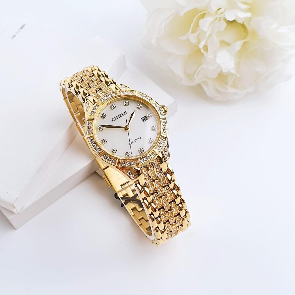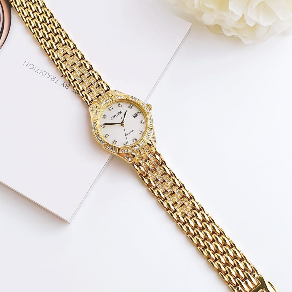 Đồng Hồ Citizen Nữ Chính Hãng EW2322-50P Eco-Drive Silhouette Gold Crystal Ladies Watch
