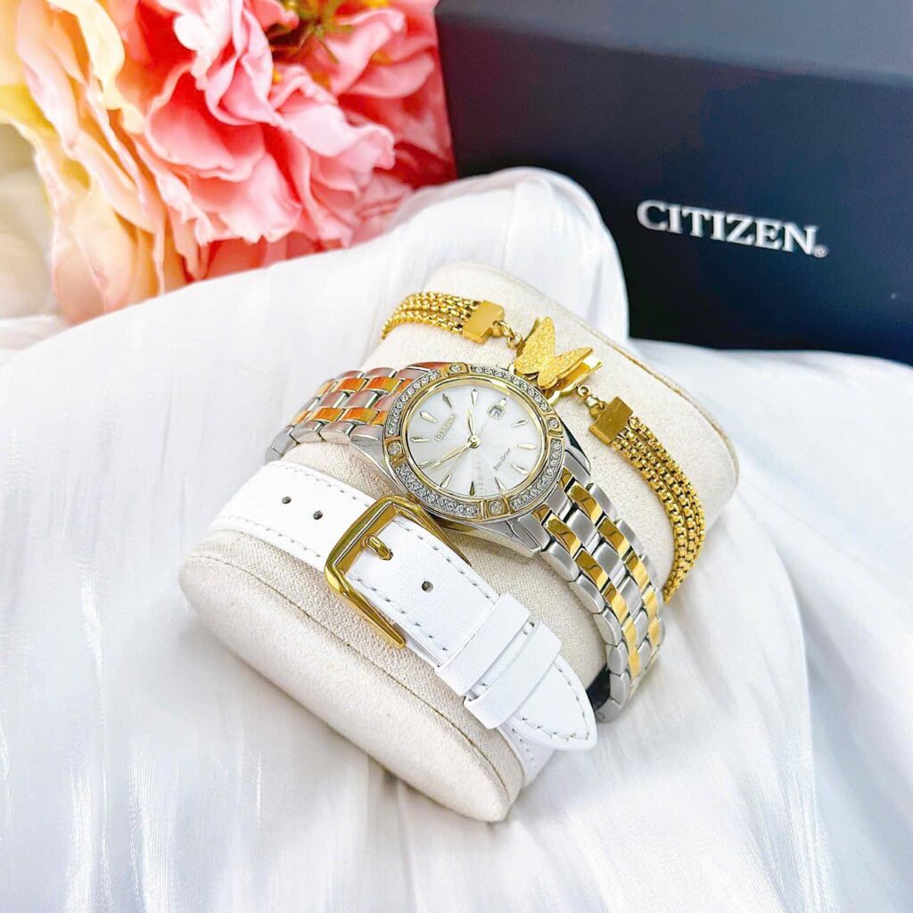 Đồng Hồ Citizen Nữ Chính Hãng EW2354-53P Eco-Drive Silhouette Two-Tone Crystal Ladies Watch
