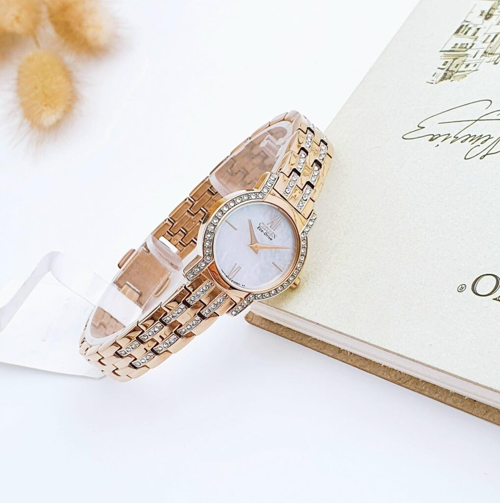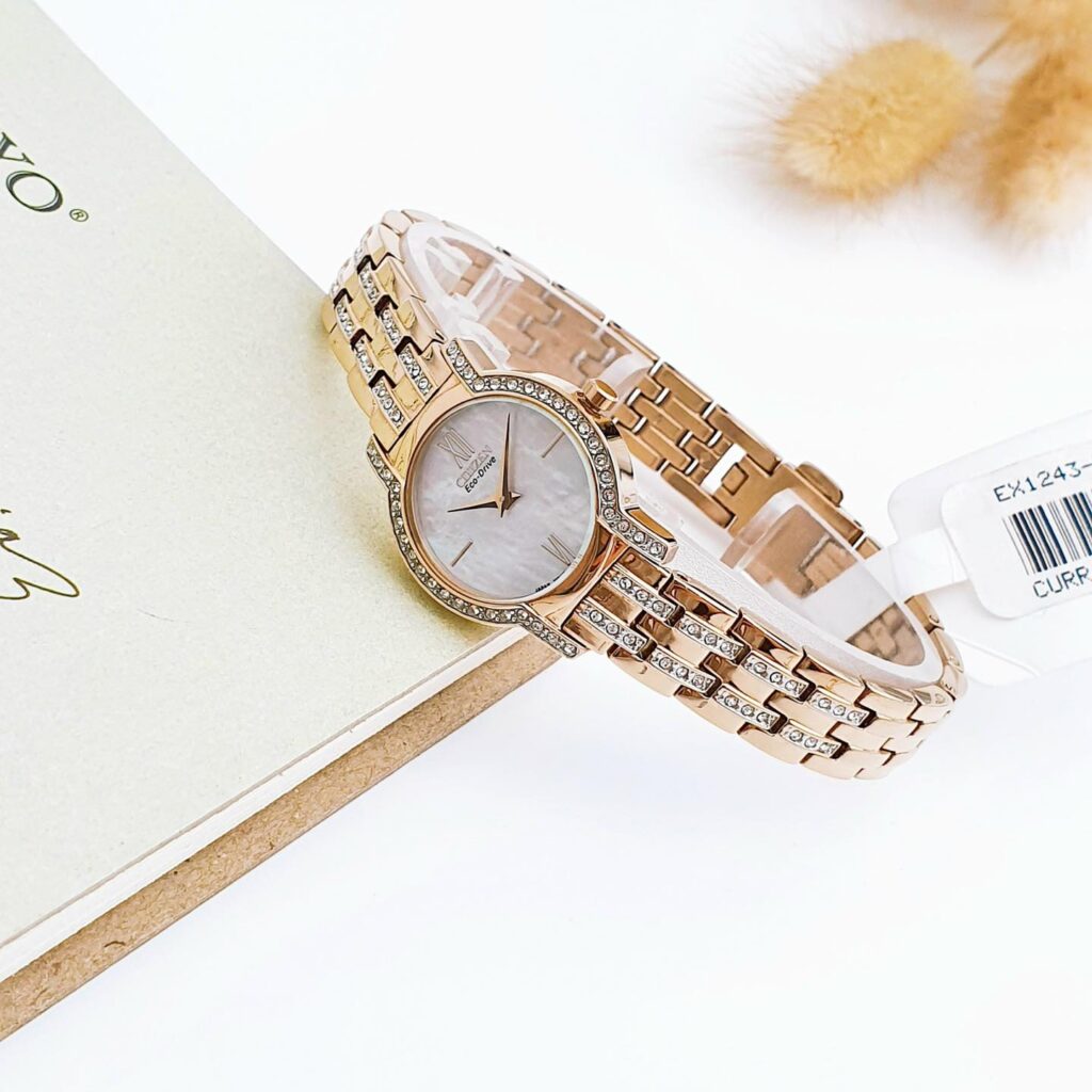 Đồng Hồ Citizen Nữ Chính Hãng EX1243-53D Eco-Drive Silhouette Crystal Rose Gold Ladies Watch