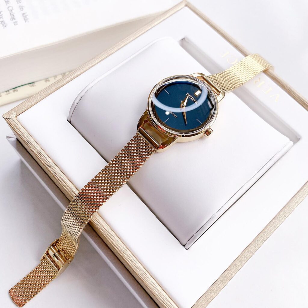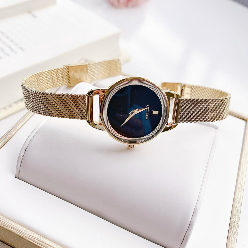 Đồng Hồ Citizen Nữ Chính Hãng EZ7002-54E Gold-Tone Stainless Quartz Black Dial Ladies Watch