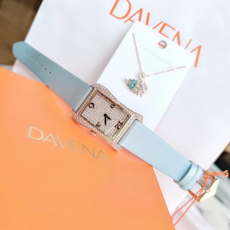 Đồng Hồ Davena Nữ Chính Hãng Leather Swarovski Ladies Set Watch