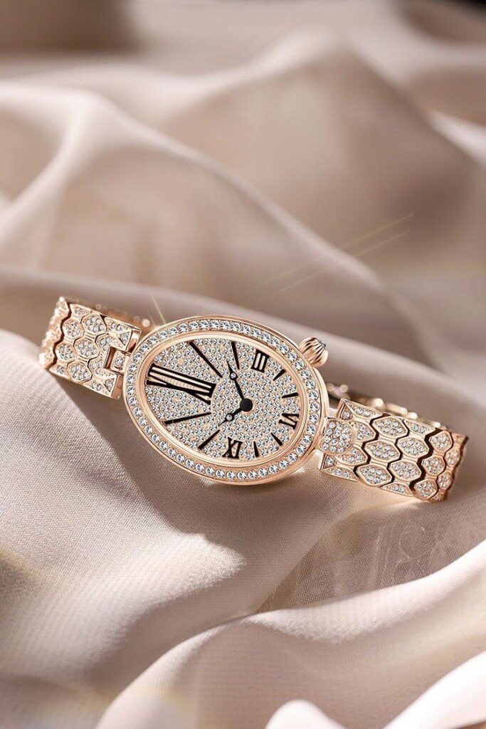 Đồng Hồ Davena Nữ Chính Hãng Rose Gold Crystal Stainless Steel Ladies Watch