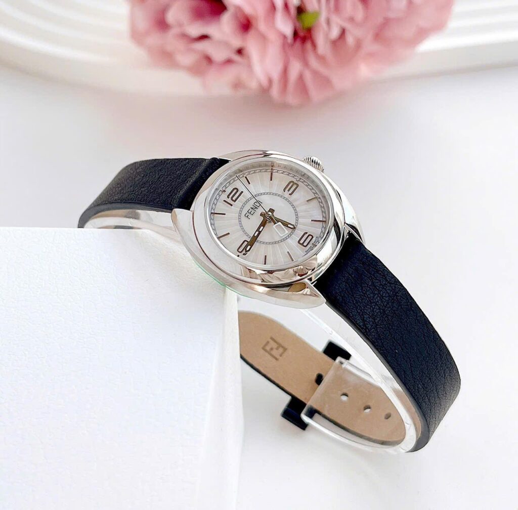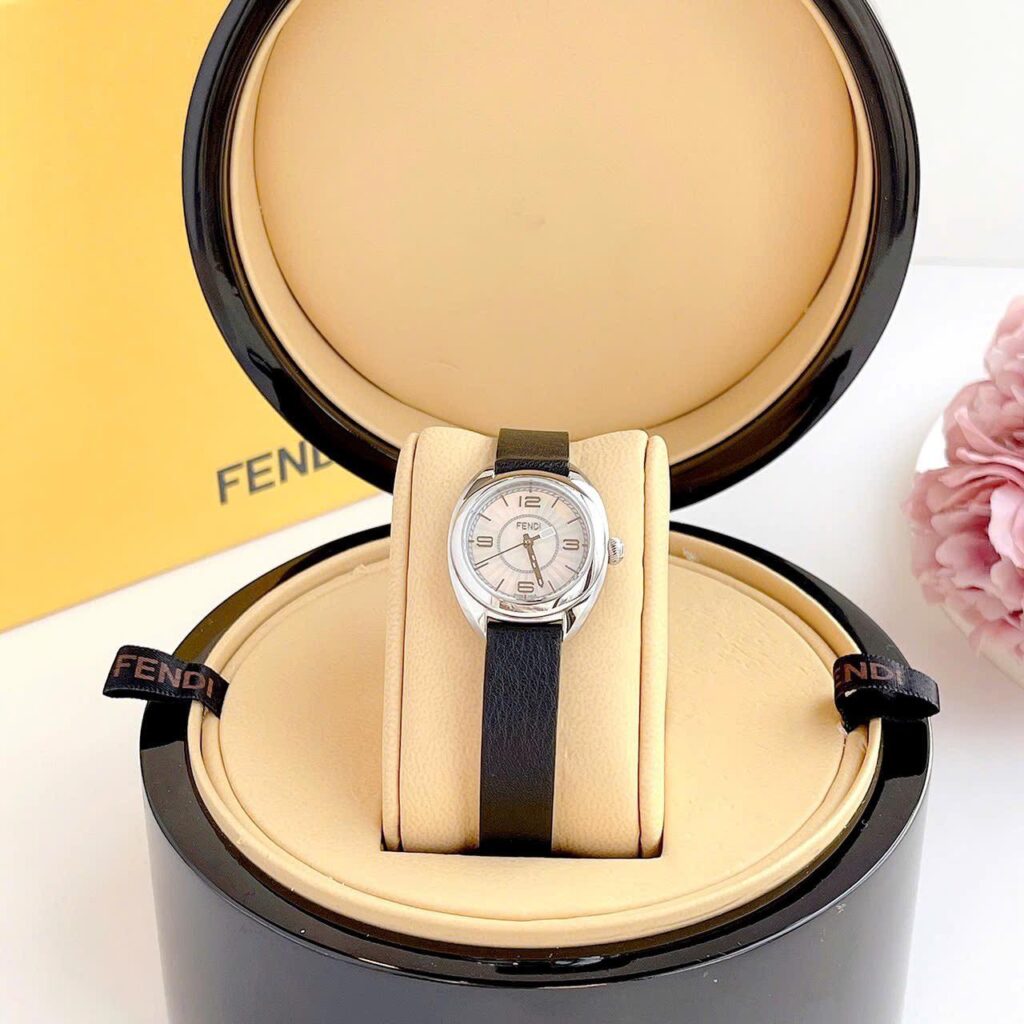 Đồng Hồ Fendi Chính Hãng Nữ F217024511 Momento Mother Of Pearl Dial Black Leather Women’s Watch