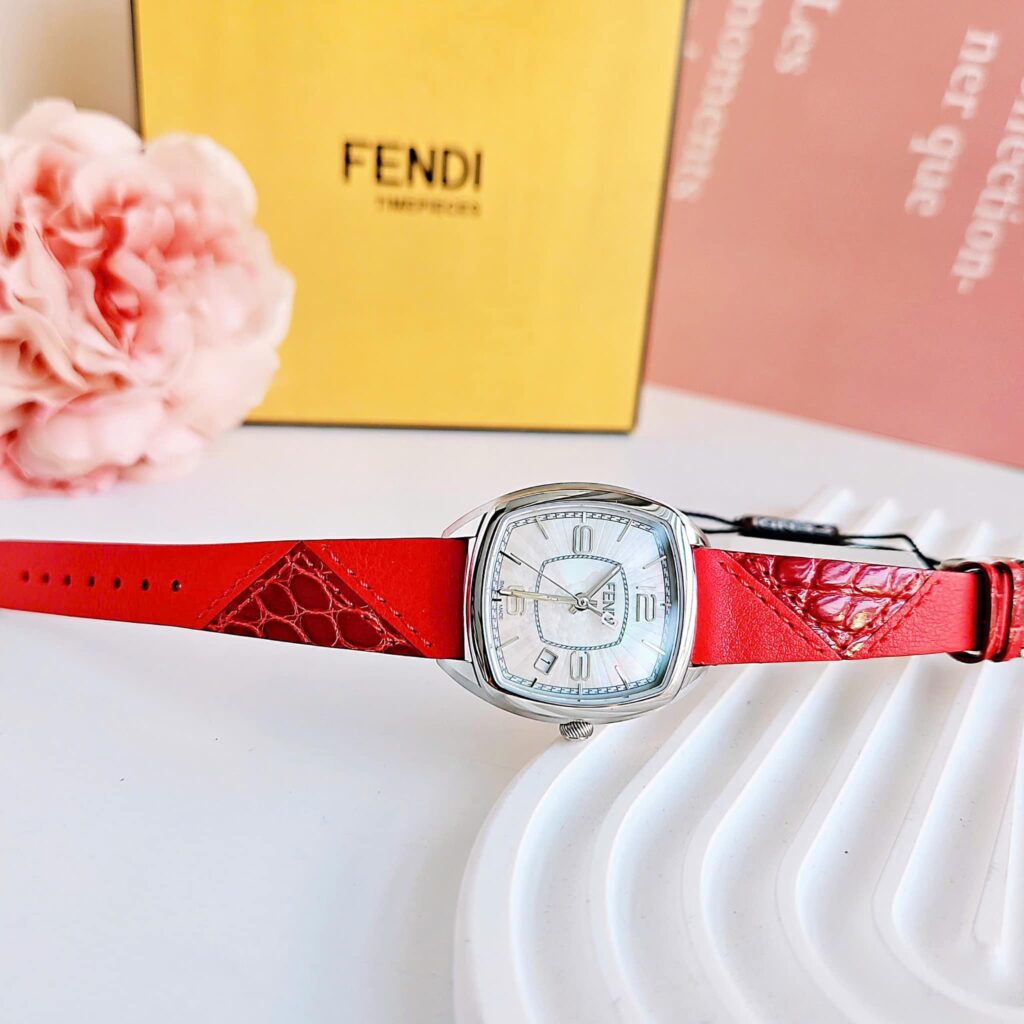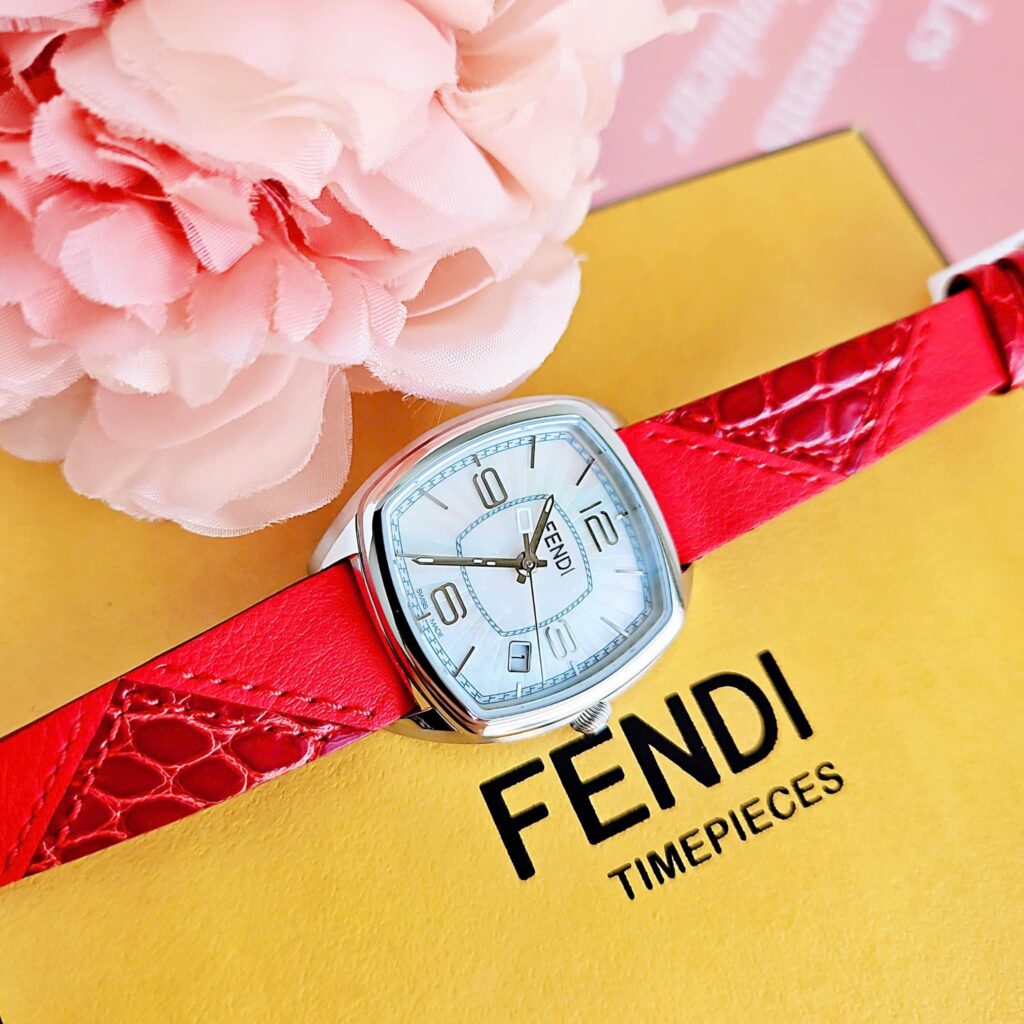 Đồng Hồ Fendi Chính Hãng Nữ F220034573 Momento Mother of Pearl Dial Red Leather Ladies Watch