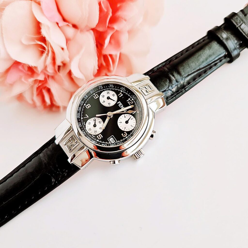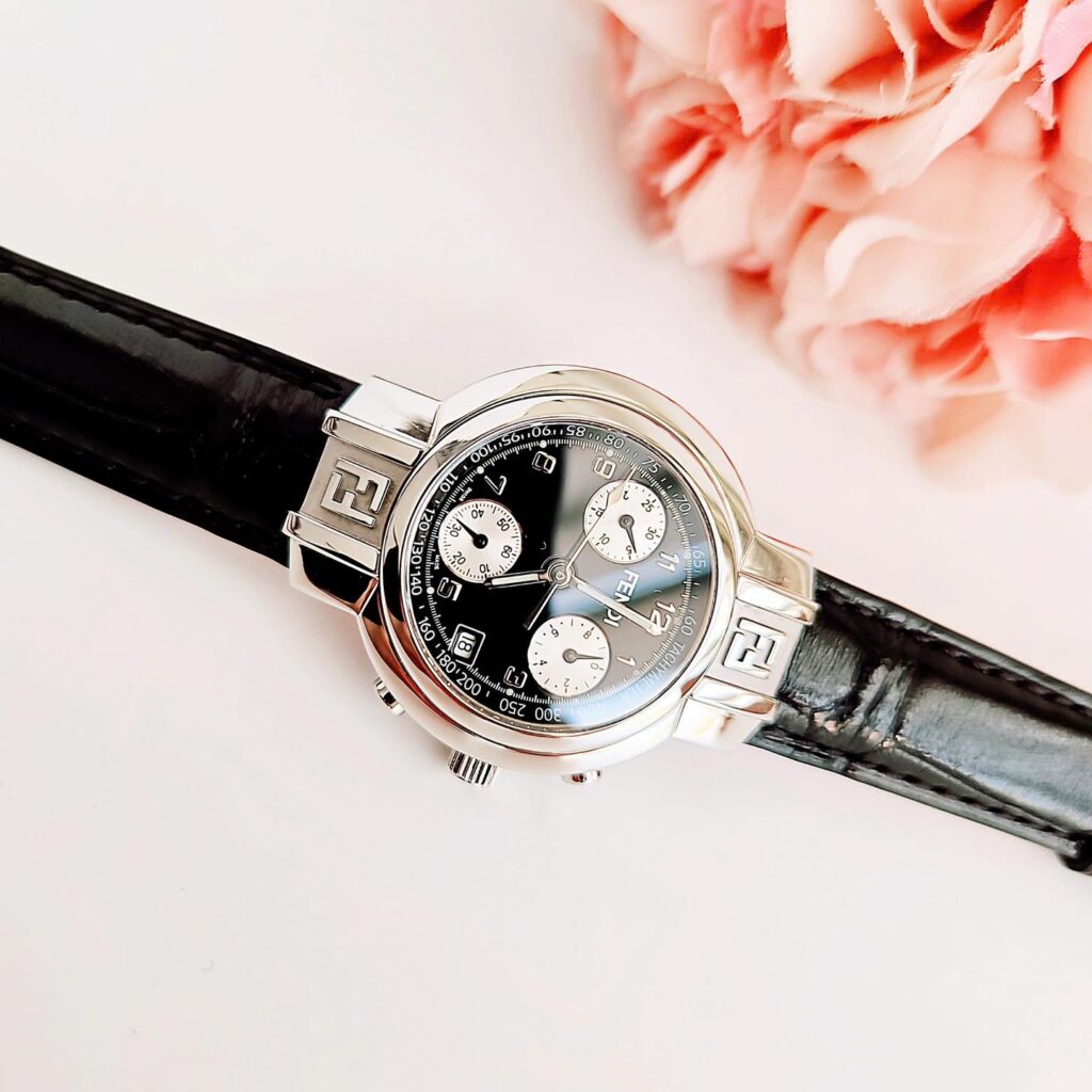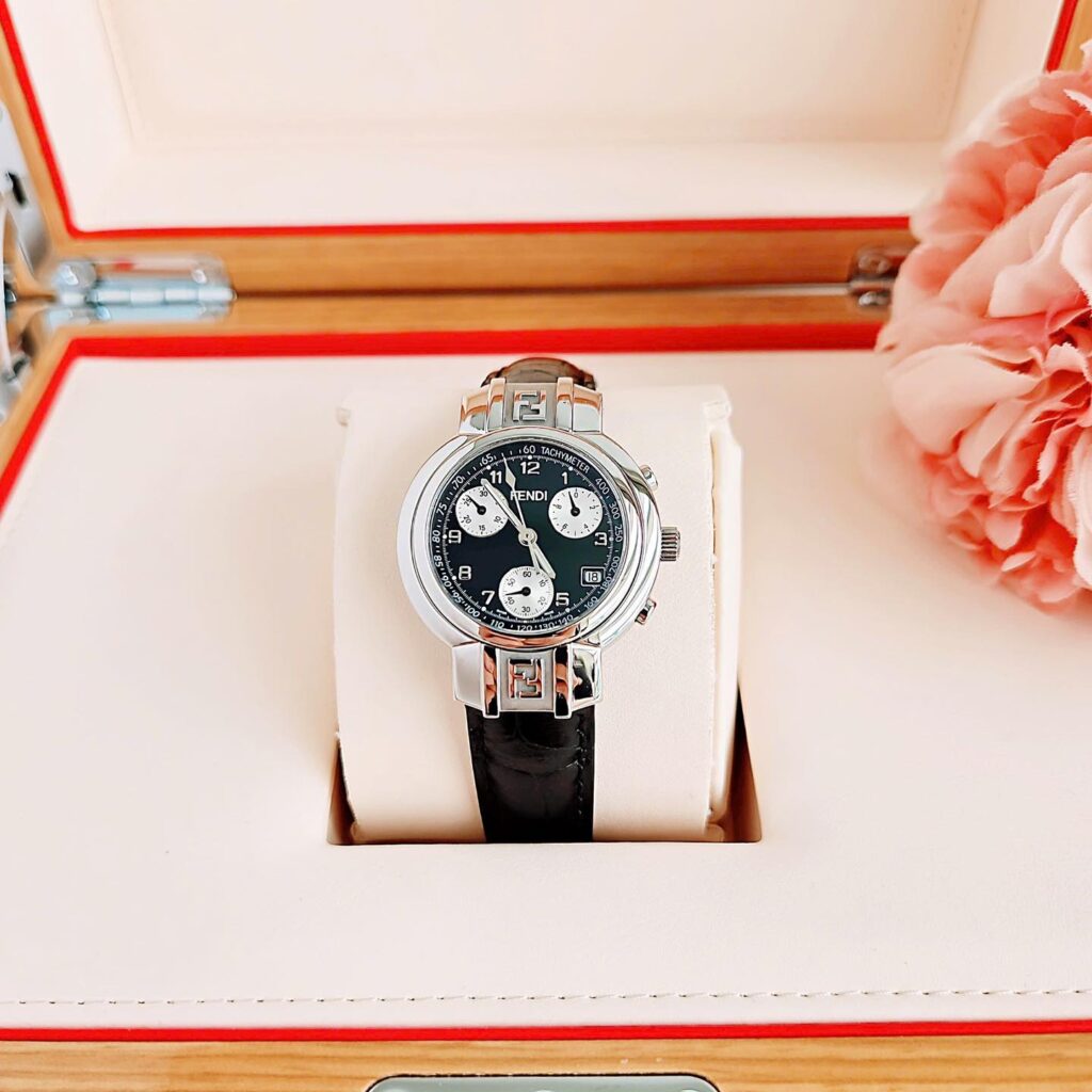 Đồng Hồ Fendi Chính Hãng Nữ Fendi Zucca Chronograph Dial Black Leather Women’s Watch