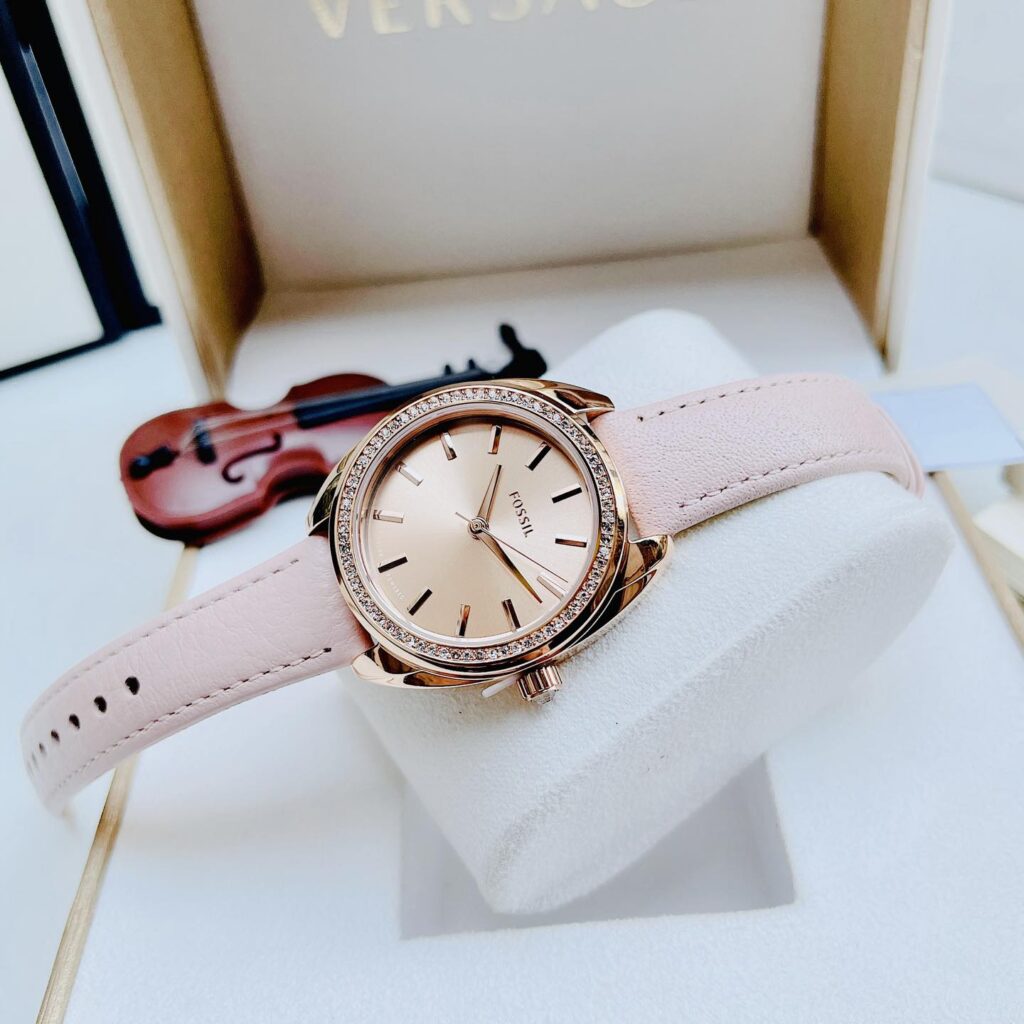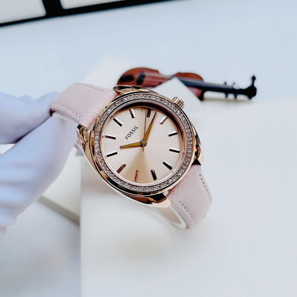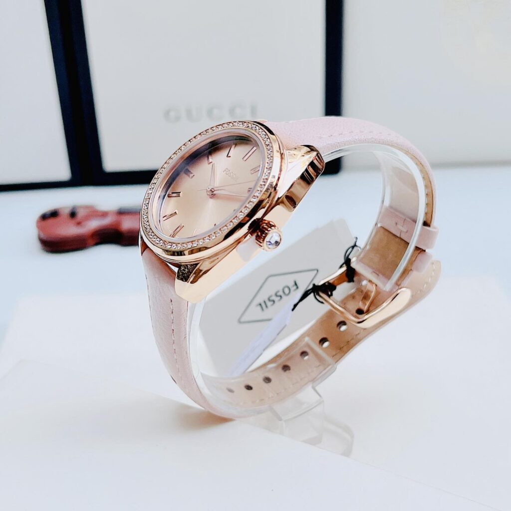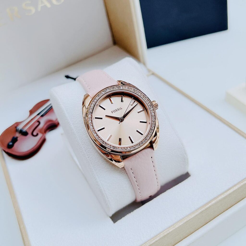 Đồng Hồ Fossil Chính Hãng Nữ BQ3773 Vale Solar-Powered Pink Leather Ladies Watch