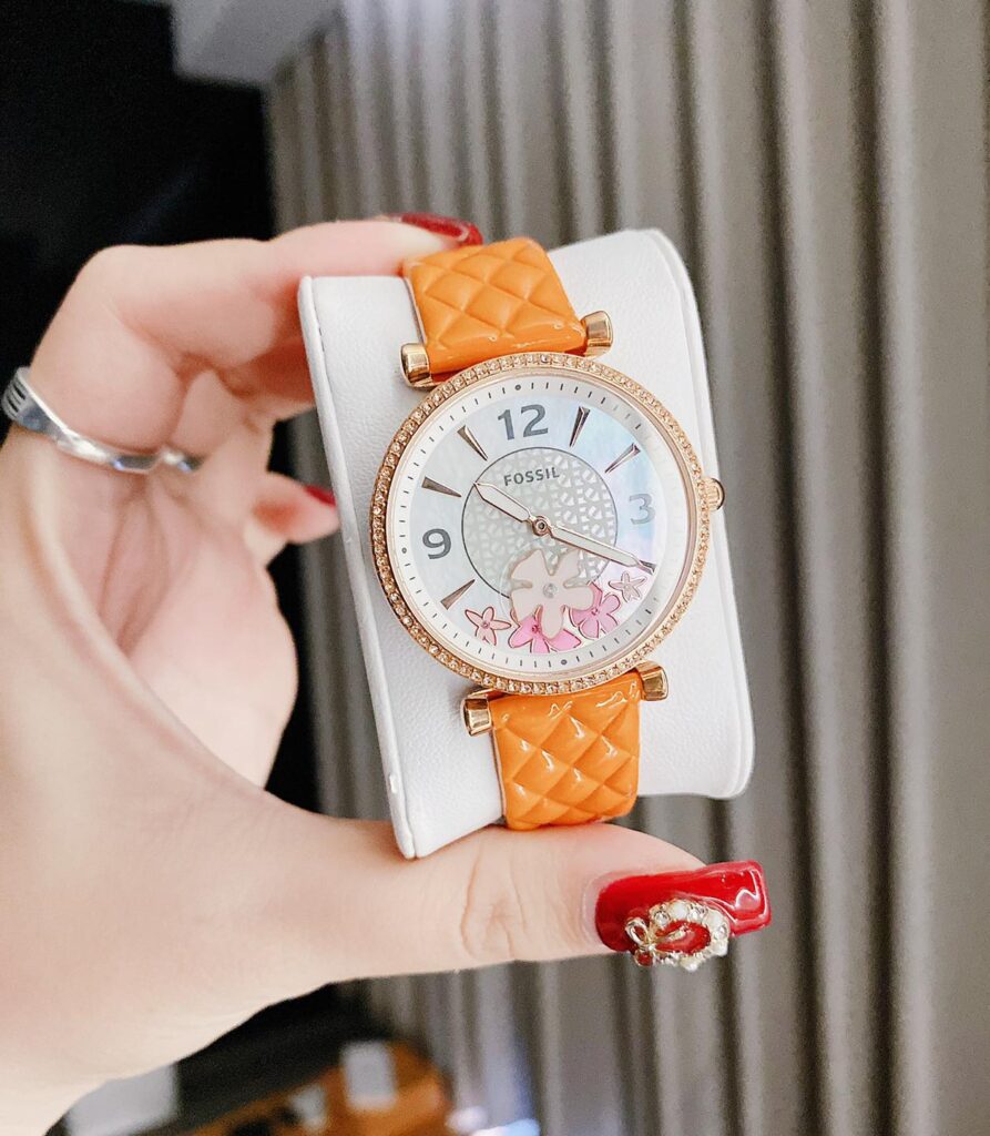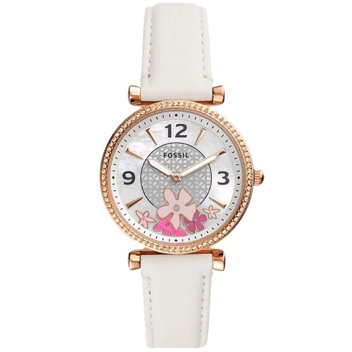 Đồng Hồ Fossil Chính Hãng Nữ ES5187 Carlie Two-Hand White Eco Leather Ladies Watch